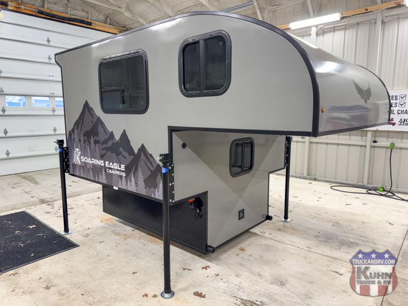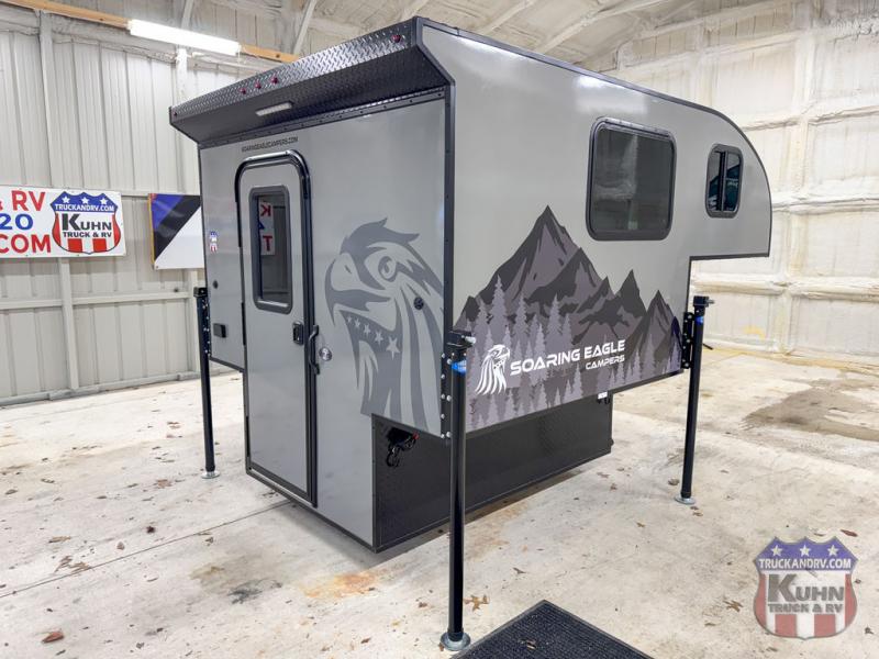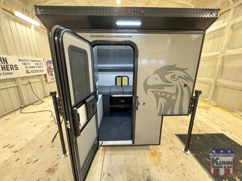 Each one of these Soaring Eagle ADLAR truck campers take the concept of entry level campers and adds real functionality to it! Their entire construction consists of an all aluminum tubular construction for better strength, lighter weight, and indifference to water. The smooth fiberglass exterior and rugged black diamond pate aluminum skin around the lower perimeter will turn heads in the highway. There are LED exterior marker/clearance lights and LED exterior security light over the entrance door for you to see clearly at night. Come find your favorite one today!