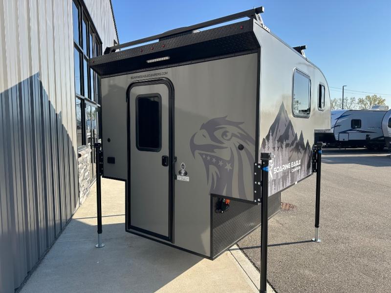 Each one of these Soaring Eagle ADLAR truck campers take the concept of entry level campers and adds real functionality to it! Their entire construction consists of an all aluminum tubular construction for better strength, lighter weight, and indifference to water. The smooth fiberglass exterior and rugged black diamond pate aluminum skin around the lower perimeter will turn heads in the highway. There are LED exterior marker/clearance lights and LED exterior security light over the entrance door for you to see clearly at night. Come find your favorite one today!