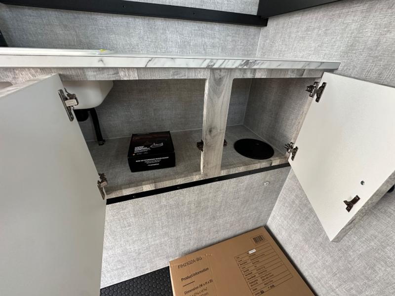You can explore in complete comfort with this truck camper on your back! There is a comfortable 45" x 80" bunk up front to sleep on, or you can choose the optional 80" x 81" pull-out North/South bed. A two person dinette with a bench seat and fold-away table provides a place to enjoy your meal after it's been prepared on the two burner electric cooktop. There is also a 12V refrigerator that comes standard and an optional microwave oven if you want meals on the go. The portable cooktop can also be taken outside for added convenience, and the dinette can be converted for additional sleeping space for a guest. You can even add an optional commode to make camping trips that much easier!