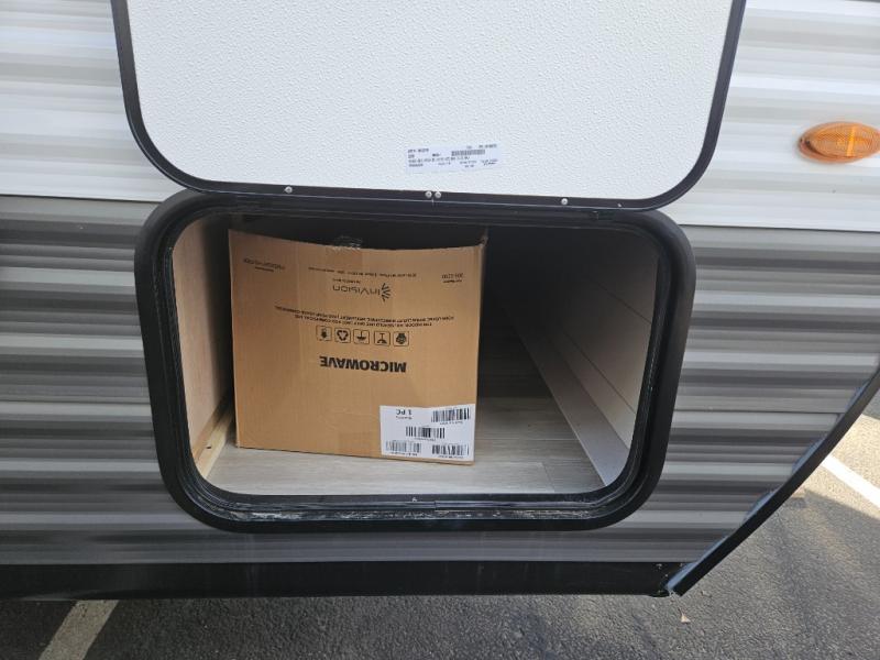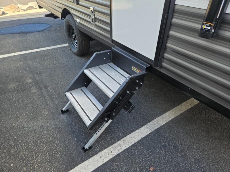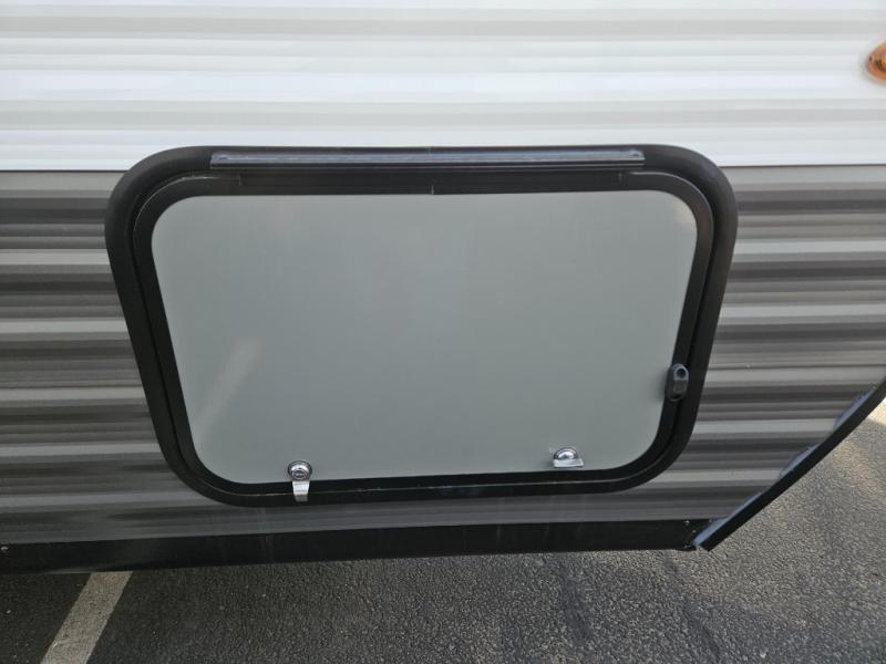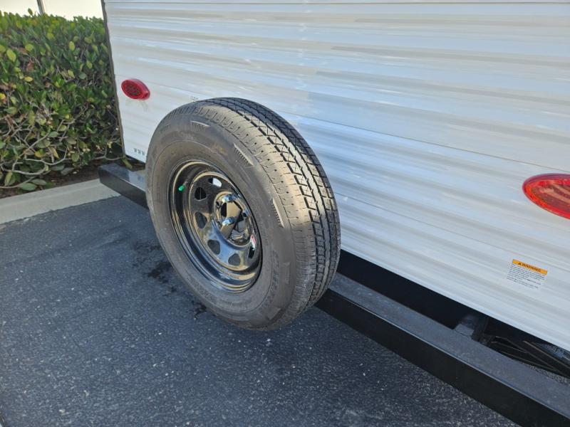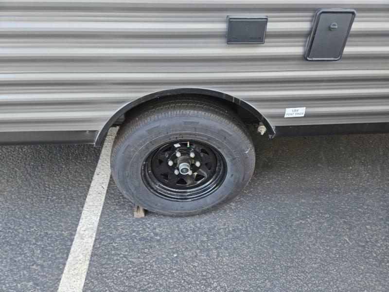 If you're in the market for a lightweight single axle travel trailer with bunk beds, you're in luck with this unit! You will have the front bed all to yourselves, and there is a wardrobe here to store your clothes. The chef can whip up lunch on the two burner cooktop, and you can dine at the booth dinette. If the weather is nice, you may just want to sit outdoors under the 13' power awning with LED lights. The rear corner bath includes a foot flush toilet and a tub/shower, and you'll find plenty of storage space throughout this model, including outside storage for charcoal, tackle boxes, and tools!