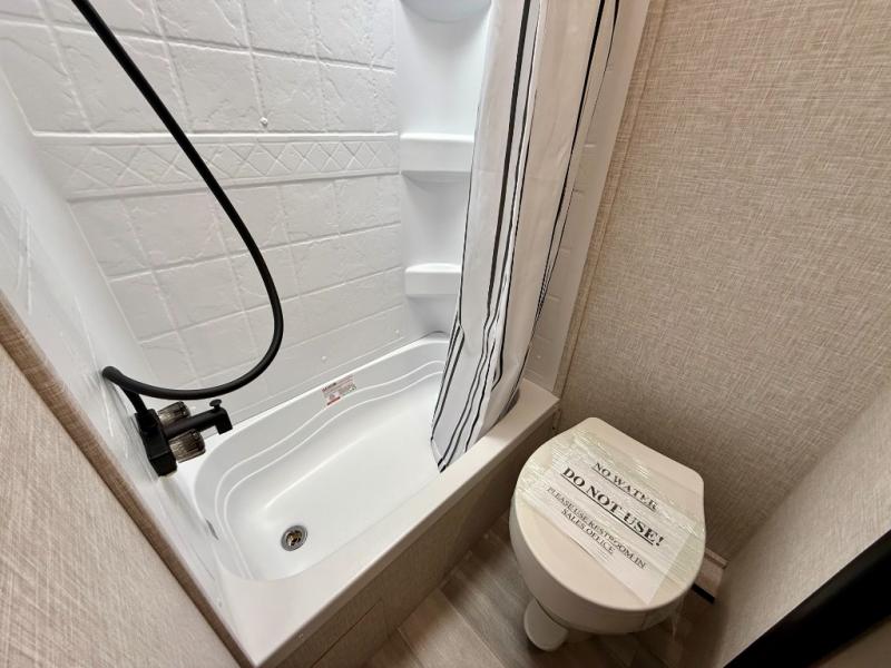 Easy to tow, setup and enjoy, this dual axle trailer offers lots of sleeping space, a booth dinette for two, and a versatile front living area and bedroom combination. You can relax on a jack-knife sofa during the daytime, and easily prepare the Murphy bed at night. You will also have two wardrobes to hang your clothes and an overhead shelf for more storage. The galley kitchen offers a 17" oven, a microwave and a refrigerator. The bathroom sink is just outside the private toilet and tub/shower room so two people can get ready at one time. And the double-size bunks will be a favorite sleeping space. There are options you might like to add such as a 15,000 BTU A/C and/or a Smart TV.