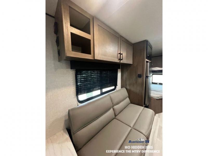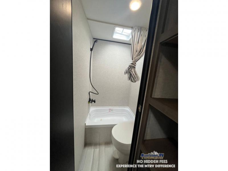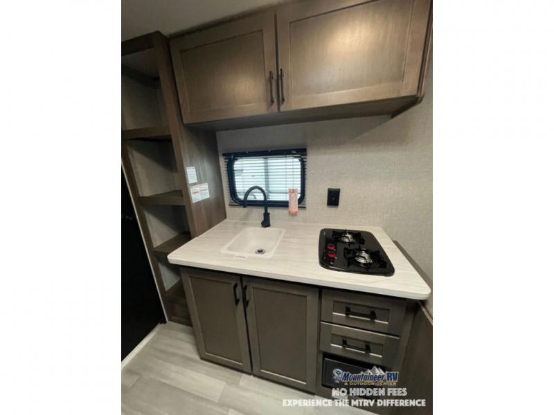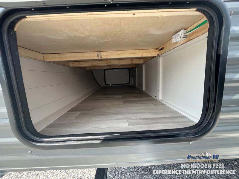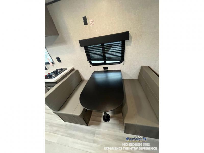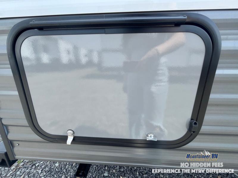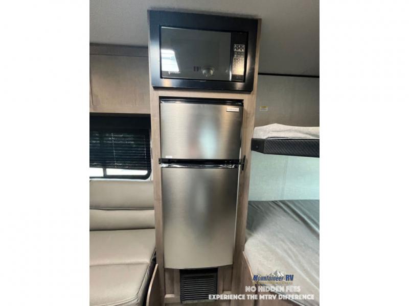 This travel trailer has everything you need for a fun getaway! You can unload the exterior storage when you get to camp, then head inside to make lunch on the two burner cooktop or microwave oven. A 12V refrigerator will keep your perishables fresh, and a booth dinette will provide dining space. The jackknife sofa offers a comfortable place to relax while you let your stomach settle from the delicious meal. Everyone can take turns freshening up in the rear corner private bath that includes a tub/shower and a toilet, and the little ones are sure to love the double over double bunk beds!
