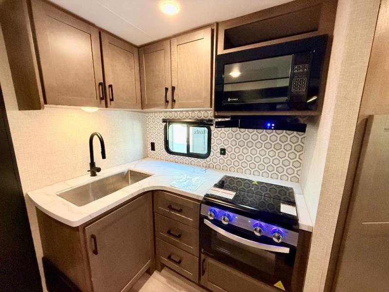 The Autumn Ridge travel trailers by Starcraft are easy to tow and easy to love! Each one is constructed with a durable Magnum Roof system, black front diamond plate protection, and fiberglass insulation so you can camp well into the colder months. The kid and pet friendly residential vinyl flooring will be easy to keep clean, and you'll love the hardwood cabinet doors, pleated blackout night shades, and pressed membrane kitchen countertops. A ceiling mount Bluetooth speaker means you can listen to your favorite tunes as you visit with friends and family, plus there is a power awning with LED lights for an inviting outdoor living space. The Autumn Ridge also comes with the Xtend Solar I Package with a 200-watt solar panel and a 30 amp controller for off-grid capabilities!