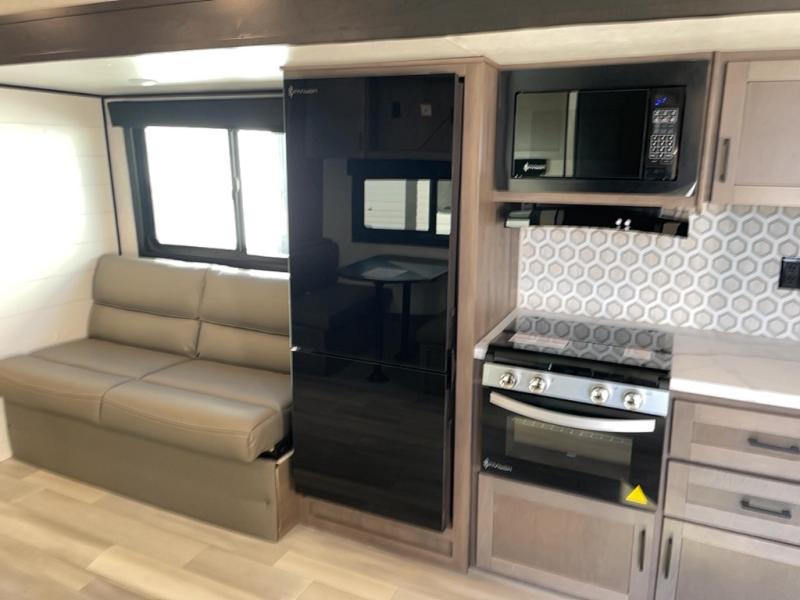 Gone are the days of having guests stay on air mattress thanks to this travel trailer with double-size bunks! You will have the bed in the front private bedroom all to yourselves and any other guests can sleep on the booth dinette and jackknife sofa in the main living area. The kitchen in this Autumn Ridge model includes a microwave oven, three burner range, and a refrigerator for food storage. There is also a walk-in pantry to keep snacks and paper goods stocked! The exterior is just as accommodating with its storage compartment, outside kitchen and 18' power awning with LED lights!