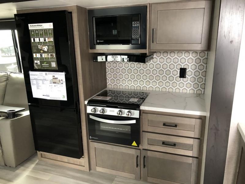 The Autumn Ridge travel trailers by Starcraft are easy to tow and easy to love! Each one is constructed with a durable Magnum Roof system, black front diamond plate protection, and fiberglass insulation so you can camp well into the colder months. The kid and pet friendly residential vinyl flooring will be easy to keep clean, and you'll love the hardwood cabinet doors, pleated blackout night shades, and pressed membrane kitchen countertops. A ceiling mount Bluetooth speaker means you can listen to your favorite tunes as you visit with friends and family, plus there is a power awning with LED lights for an inviting outdoor living space. The Autumn Ridge also comes with the Xtend Solar I Package with a 200-watt solar panel and a 30 amp controller for off-grid capabilities!