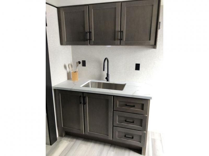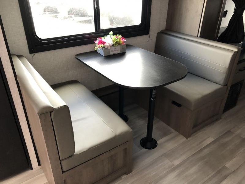 Gone are the days of having guests stay on air mattress thanks to this travel trailer with double-size bunks! You will have the bed in the front private bedroom all to yourselves and any other guests can sleep on the booth dinette and jackknife sofa in the main living area. The kitchen in this Autumn Ridge model includes a microwave oven, three burner range, and a refrigerator for food storage. There is also a walk-in pantry to keep snacks and paper goods stocked! The exterior is just as accommodating with its storage compartment, outside kitchen and 18' power awning with LED lights!