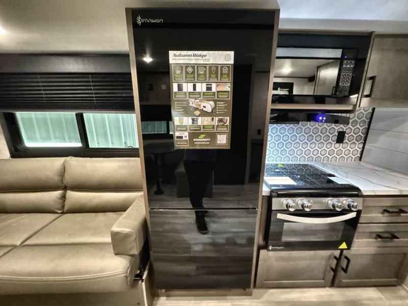 The Autumn Ridge travel trailers by Starcraft are easy to tow and easy to love! Each one is constructed with a durable Magnum Roof system, black front diamond plate protection, and fiberglass insulation so you can camp well into the colder months. The kid and pet friendly residential vinyl flooring will be easy to keep clean, and you'll love the hardwood cabinet doors, pleated blackout night shades, and pressed membrane kitchen countertops. A ceiling mount Bluetooth speaker means you can listen to your favorite tunes as you visit with friends and family, plus there is a power awning with LED lights for an inviting outdoor living space. The Autumn Ridge also comes with the Xtend Solar I Package with a 200-watt solar panel and a 30 amp controller for off-grid capabilities!