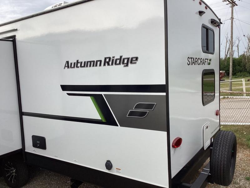 The Autumn Ridge travel trailers by Starcraft are easy to tow and easy to love! Each one is constructed with a durable Magnum Roof system, black front diamond plate protection, and fiberglass insulation so you can camp well into the colder months. The kid and pet friendly residential vinyl flooring will be easy to keep clean, and you'll love the hardwood cabinet doors, pleated blackout night shades, and pressed membrane kitchen countertops. A ceiling mount Bluetooth speaker means you can listen to your favorite tunes as you visit with friends and family, plus there is a power awning with LED lights for an inviting outdoor living space. The Autumn Ridge also comes with the Xtend Solar I Package with a 200-watt solar panel and a 30 amp controller for off-grid capabilities!