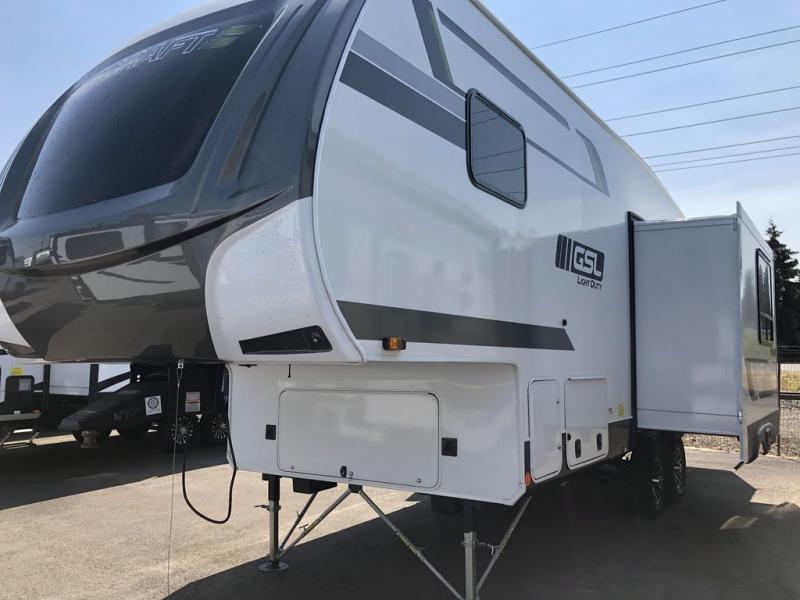 With any GSL Light Duty fifth wheel by Starcraft you can travel with confidence. Each unit features a 4-point automatic leveling system to make setting up in camp super easy, plus the PVC roof membrane and triple sealed slides with 4-corner compression for a tight seal keep your unit protected while you are on the road. The TuffShell vacuum bonded laminated construction that is reinforced with heavy-duty fiberglass and welded aluminum framing will provide you years of strength and durability, and the Four Season package complete with a heated and enclosed underbelly, a high performance furnace to keep you warm, and double insulated baggage doors plus more, makes this an all weather fifth wheel just waiting for your next journey whenever that might be!