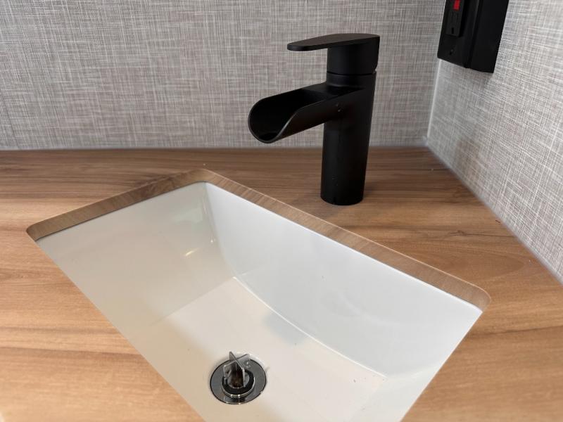 With any Starcraft Super Lite travel trailer, the solid and lightweight construction includes a fully walkable roof with a PVC roofing membrane that easily reflects solar heat and UV rays and TuffShell vacuum bonded laminated construction, reinforced with heavy-duty fiberglass and welded aluminum frames. There is also a molded front cap with LED lighting to protect against elements, a power tongue jack for easy towing, plus a power awning with LED lighting. The interior is spacious with an 81" living room ceiling height, hardwood cabinet doors, and flush floor slides with residential vinyl flooring and pressed membrane countertops for easy cleanup. Don't wait for your next adventure, take a Super Lite with you today!