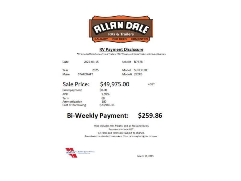 Starcraft Super Lite travel trailer 252RB highlights: