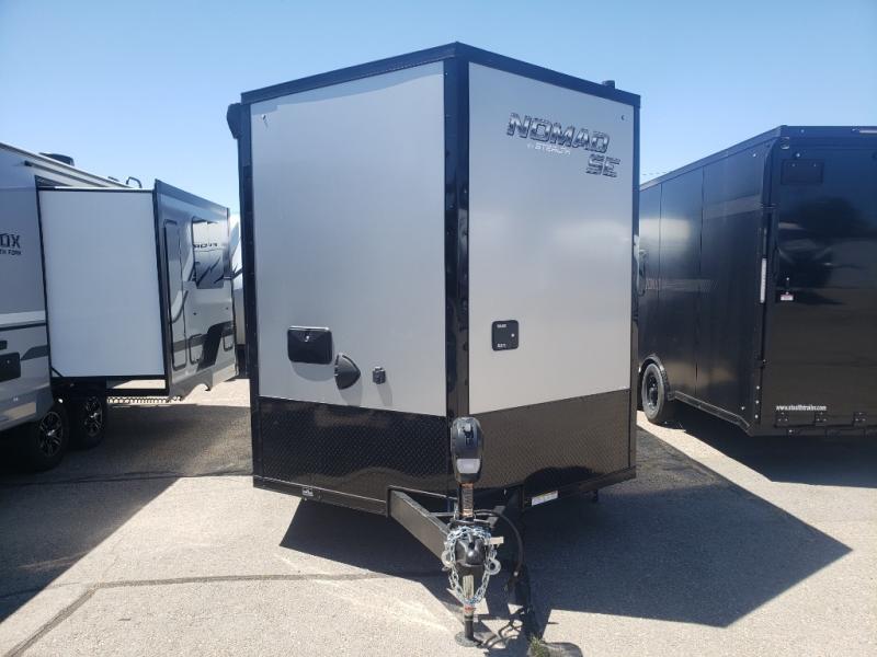 The Stealth Trailers Nomad toy hauler can go from the job site to the campsite because it works as hard as it plays! At a fraction of the price of the luxury toy haulers on the market, the Nomad provides you and your active family with a value-friendly alternative that will still deliver the essential comforts for camping. The Nomad can handle almost any type of gear you throw at it, like dirt bikes, side-by-sides, Jeeps, cars, and construction equipment because it is wider than most RVs with its 8' 6" body. The Nomad has a seamless aluminum flat top roof, a 36" slant wedge, an 18" extended triple tube A-frame, 5,000-LB recessed D-rings, a deluxe RV door with window and screen, and an outside shower. The .040" screwless aluminum exterior comes in many different colors so that you can pick the one that suits your taste best, and some of the most popular options that you can add to your trailer are the wall-mount sofa, power awning with LED lights, two-tone exterior with divider strip, Happijac bed system, and recessed E-track.