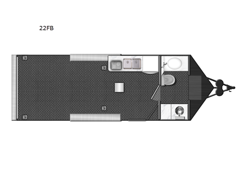 This front bath toy hauler is ready for adventure when you are! There is an RV toilet, a medicine cabinet, and robe hooks to keep everything picked up. The kitchen has everything you'd expect to find at home; a microwave oven, a refrigerator, plus a two burner drop-in cooktop. The jackknife sofas allow you to sleep two comfortably, and the ramp door will make unloading quick and simple.
