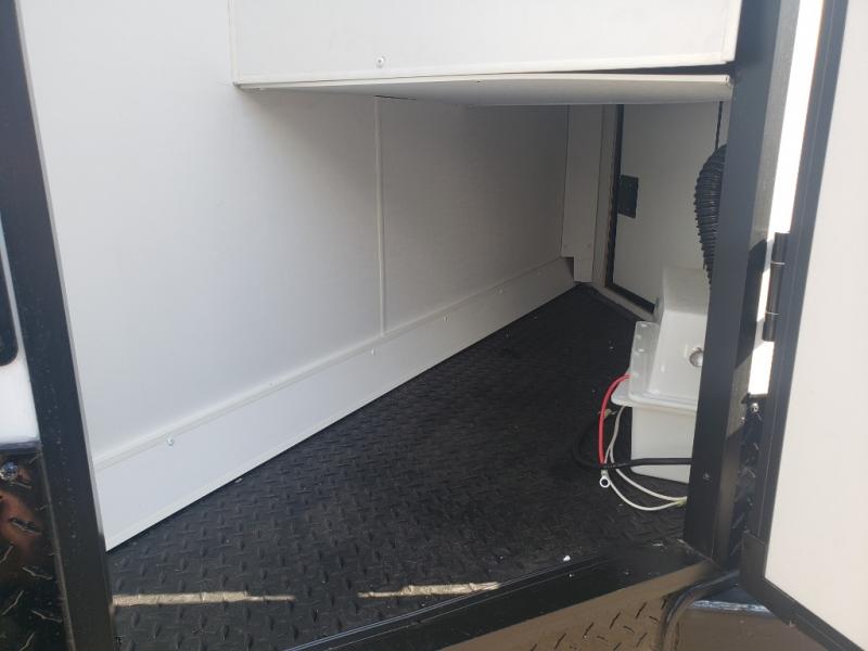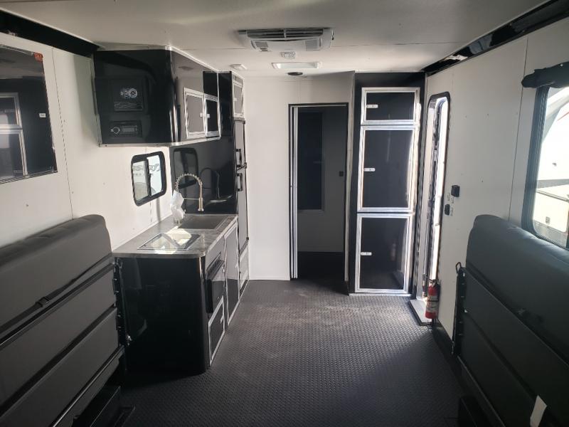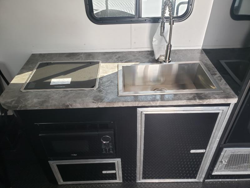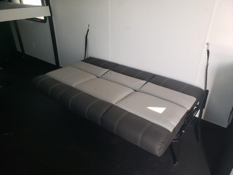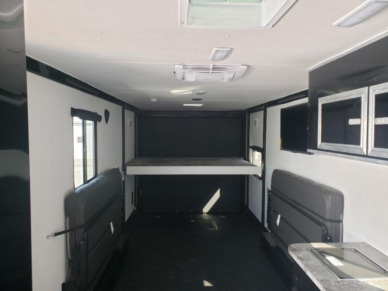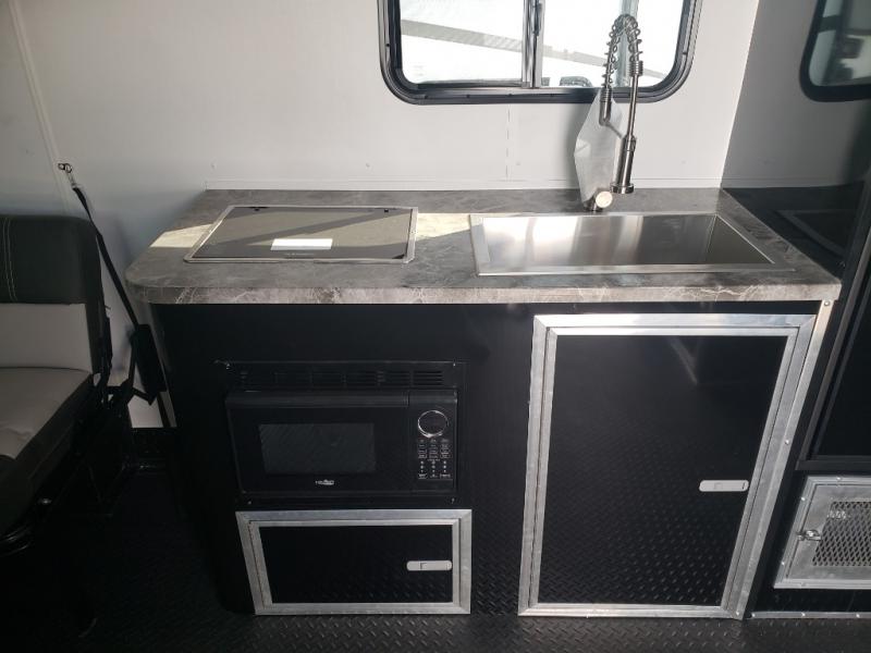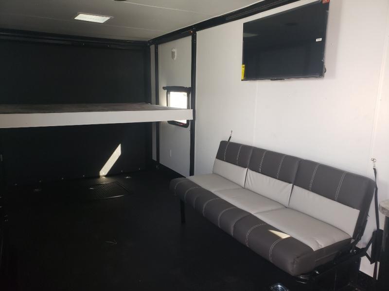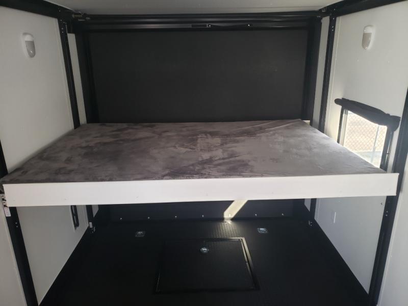 The Stealth Trailers Nomad toy hauler can go from the job site to the campsite because it works as hard as it plays! At a fraction of the price of the luxury toy haulers on the market, the Nomad provides you and your active family with a value-friendly alternative that will still deliver the essential comforts for camping. The Nomad can handle almost any type of gear you throw at it, like dirt bikes, side-by-sides, Jeeps, cars, and construction equipment because it is wider than most RVs with its 8' 6" body. The Nomad has a seamless aluminum flat top roof, a 36" slant wedge, an 18" extended triple tube A-frame, 5,000-LB recessed D-rings, a deluxe RV door with window and screen, and an outside shower. The .040" screwless aluminum exterior comes in many different colors so that you can pick the one that suits your taste best, and some of the most popular options that you can add to your trailer are the wall-mount sofa, power awning with LED lights, two-tone exterior with divider strip, Happijac bed system, and recessed E-track.