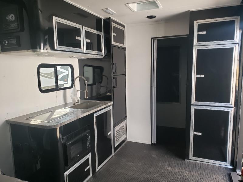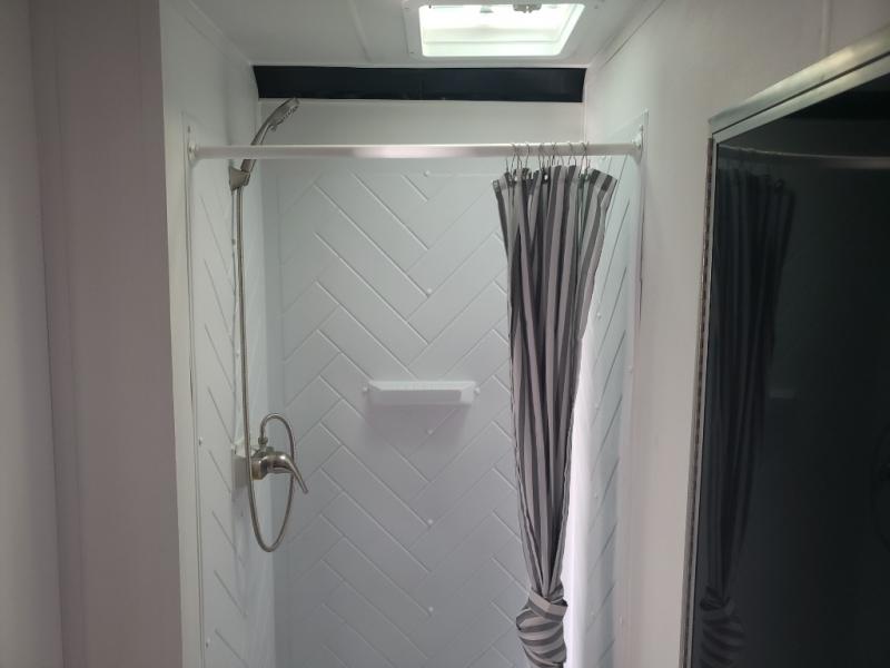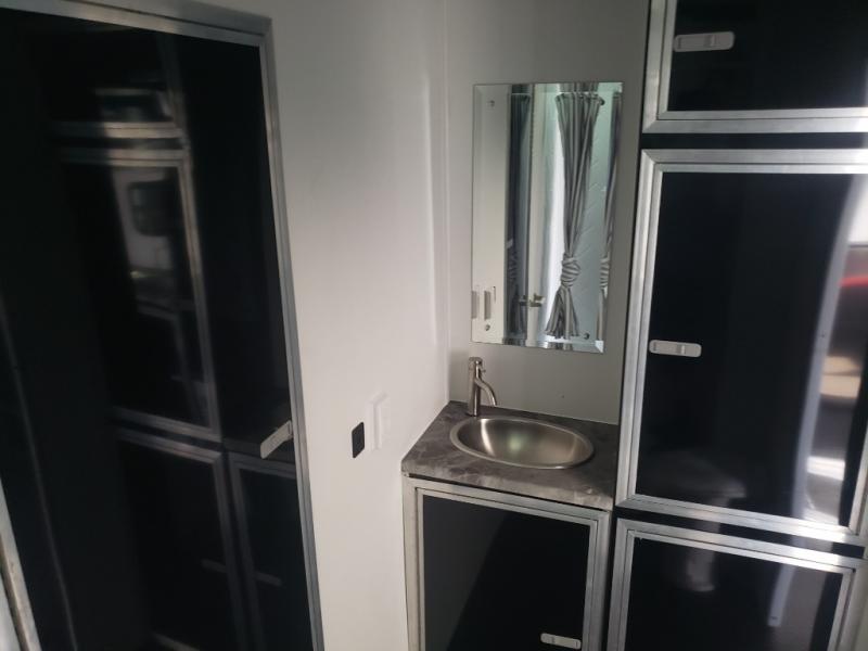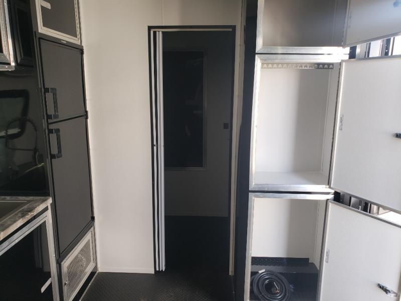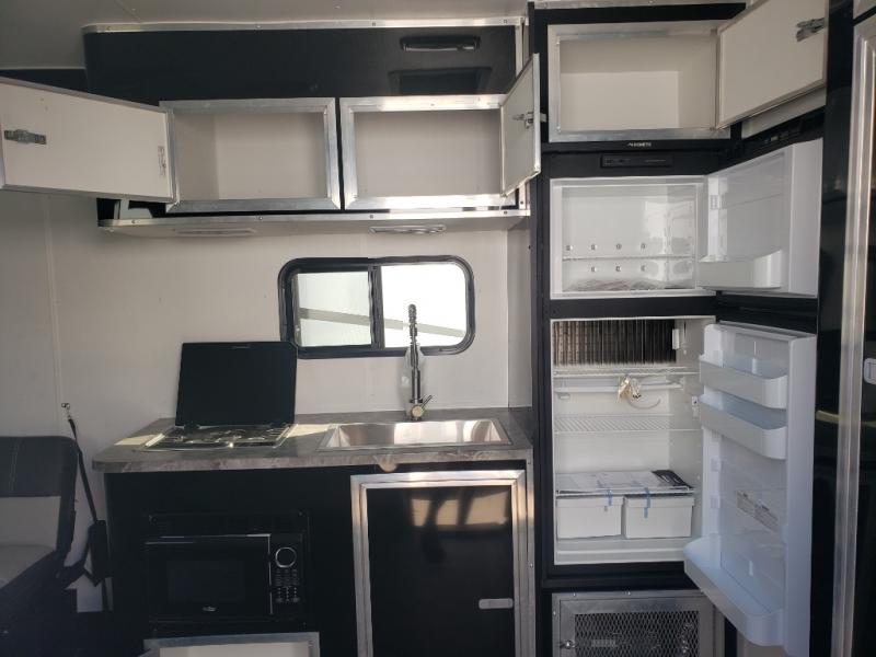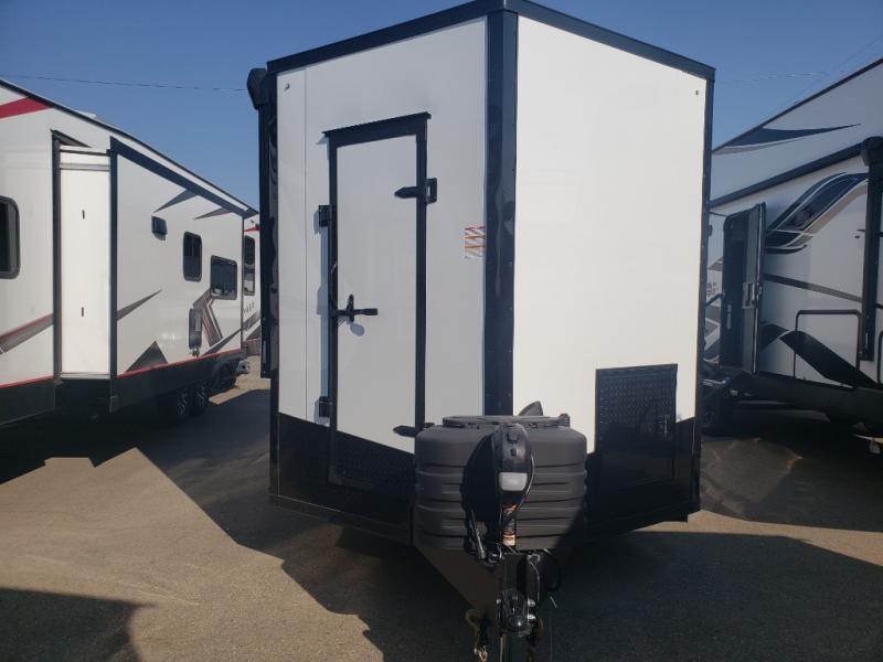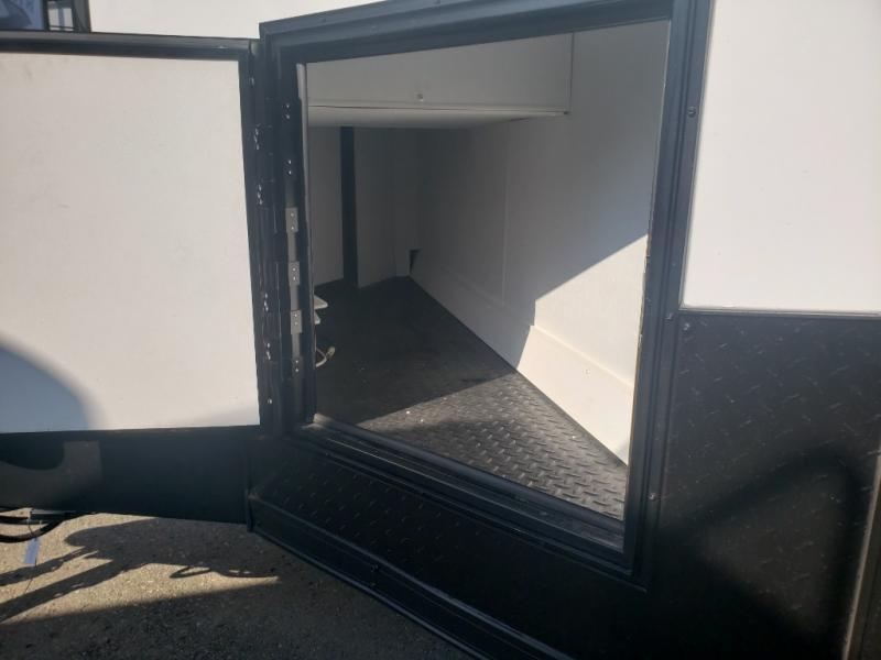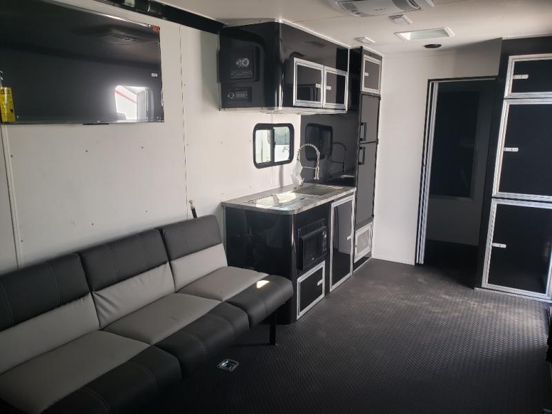 The Stealth Trailers Nomad toy hauler can go from the job site to the campsite because it works as hard as it plays! At a fraction of the price of the luxury toy haulers on the market, the Nomad provides you and your active family with a value-friendly alternative that will still deliver the essential comforts for camping. The Nomad can handle almost any type of gear you throw at it, like dirt bikes, side-by-sides, Jeeps, cars, and construction equipment because it is wider than most RVs with its 8' 6" body. The Nomad has a seamless aluminum flat top roof, a 36" slant wedge, an 18" extended triple tube A-frame, 5,000-LB recessed D-rings, a deluxe RV door with window and screen, and an outside shower. The .040" screwless aluminum exterior comes in many different colors so that you can pick the one that suits your taste best, and some of the most popular options that you can add to your trailer are the wall-mount sofa, power awning with LED lights, two-tone exterior with divider strip, Happijac bed system, and recessed E-track.