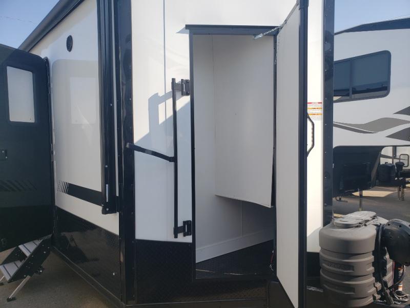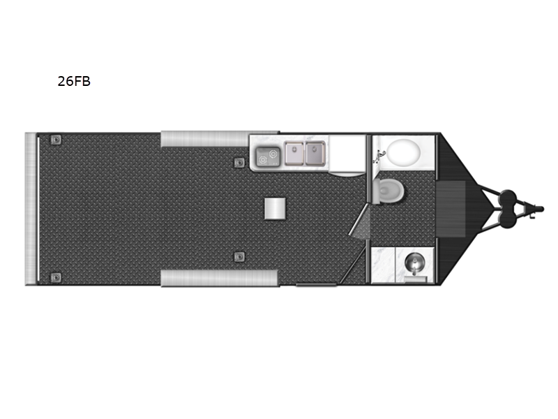 This front bath toy hauler is ready for adventure when you are! There is an RV toilet, a medicine cabinet, and robe hooks to keep everything picked up. The kitchen has everything you'd expect to find at home; a microwave oven, a refrigerator, plus a two burner drop-in cooktop. The jackknife sofas allow you to sleep two comfortably, and the ramp door will make unloading quick and simple.