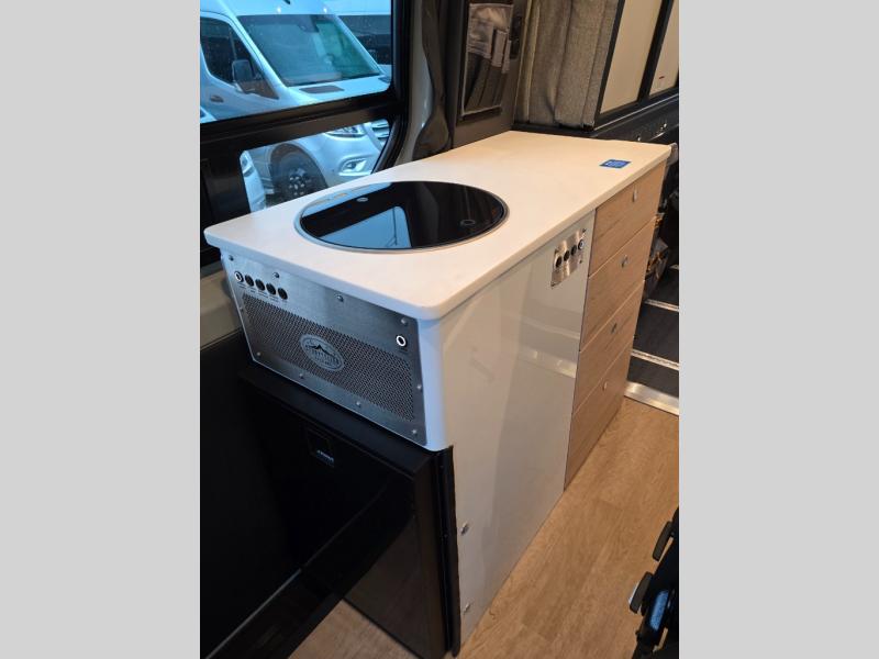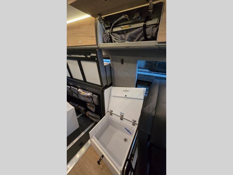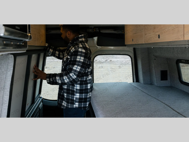 The Beast MODE van is more rugged than ever to meet your adventurous lifestyle! The nVader brush guard by Flarespace is new, along with an nVader ladder by Flarespace. The swivel driver and passenger seats make for a comfortable drive and once you arrive at your destination you can prepare a delicious meal with the portable induction cooktop, then enjoy it at the removable dinette table. The cargo area has a L-track system that can fold up the Dreamweaver bed when you need to load your bikes into the back. Plus, you have a GrooveLounge 2-seater convertible sofa bed that can be for sitting, lounging, or sleeping!