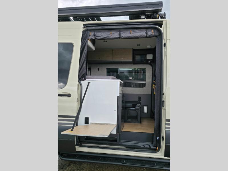 Live free, explore endlessly, and tell better stories with the Storyteller Overland Class B diesel van! With an all-wheel drive and diesel engine, the Storyteller Overland MODE OG models are always ready to go whenever you are! You can travel with complete peace of mind knowing that each van meets all of the qualifications for the various and rigorous safety tests, so it is safe. But the Storyteller Overland is also fun and rugged with its rugged roof rack with sonic wedge deflector, powered awning with dimmable LED lights, portable toilet, outside shower, and portable Bluetooth speaker. The HALO shower conveniently stores in a cabinet and includes a shower head and curtain that can be rolled up and stored when not in use, providing you with more living space! Additional features include an M-Power energy system powered by Lithionics, convenient bug screens, plus 110V outlets and USB ports to keep you charged up!