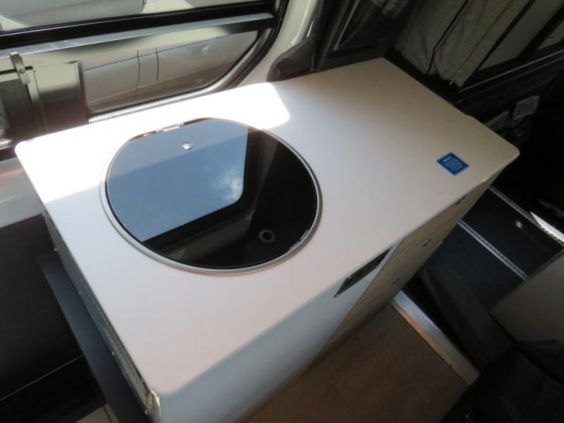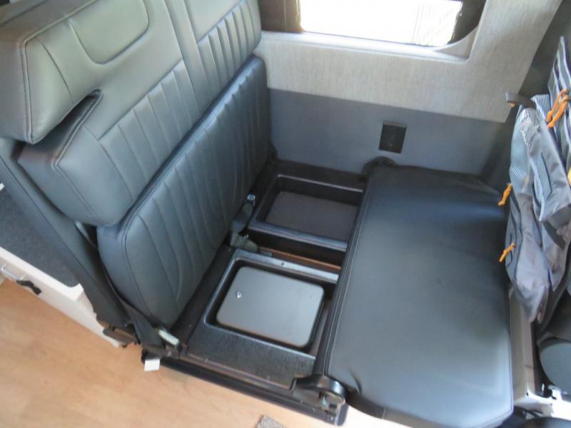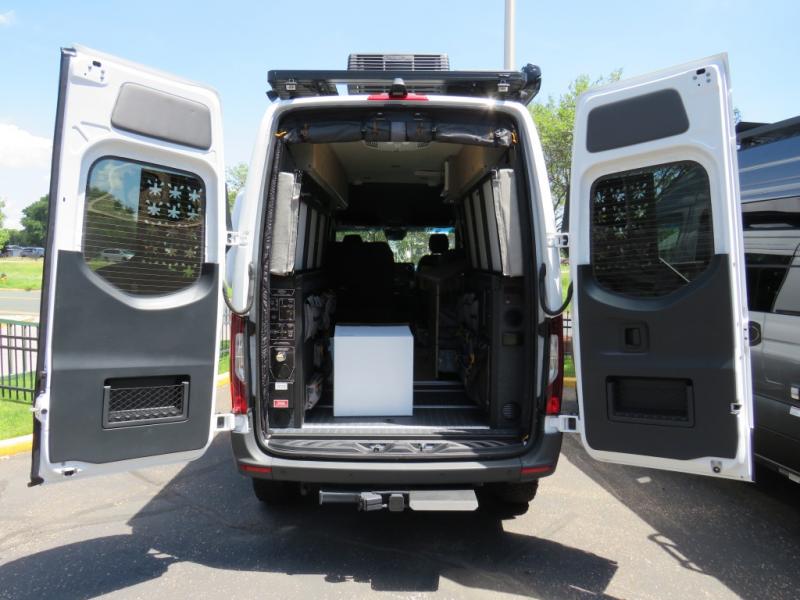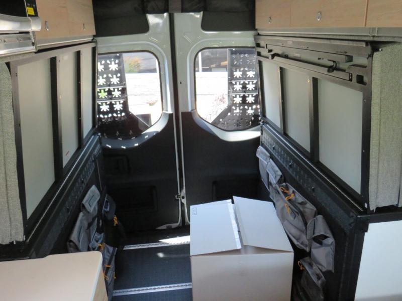 The Beast MODE van is more rugged than ever to meet your adventurous lifestyle! The nVader brush guard by Flarespace is new, along with an nVader ladder by Flarespace. The swivel driver and passenger seats make for a comfortable drive and once you arrive at your destination you can prepare a delicious meal with the portable induction cooktop, then enjoy it at the removable dinette table. The cargo area has a L-track system that can fold up the Dreamweaver bed when you need to load your bikes into the back. Plus, you have a GrooveLounge 2-seater convertible sofa bed that can be for sitting, lounging, or sleeping!