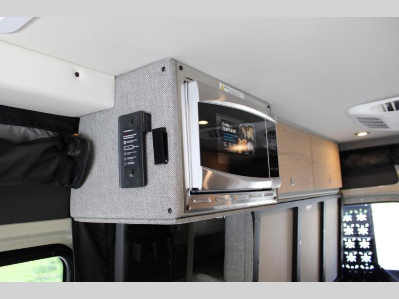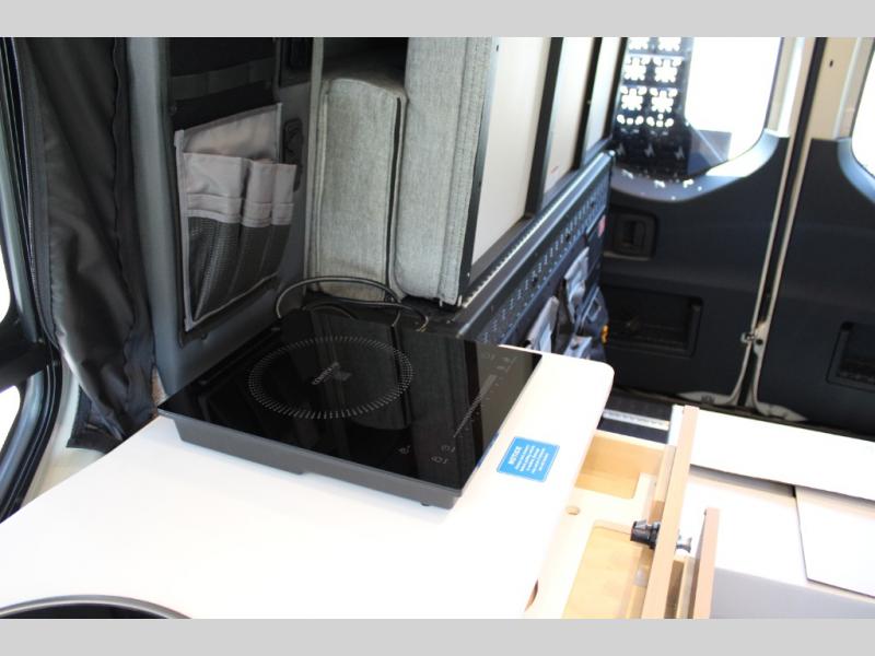 The Beast MODE van is more rugged than ever to meet your adventurous lifestyle! The nVader brush guard by Flarespace is new, along with an nVader ladder by Flarespace. The swivel driver and passenger seats make for a comfortable drive and once you arrive at your destination you can prepare a delicious meal with the portable induction cooktop, then enjoy it at the removable dinette table. The cargo area has a L-track system that can fold up the Dreamweaver bed when you need to load your bikes into the back. Plus, you have a GrooveLounge 2-seater convertible sofa bed that can be for sitting, lounging, or sleeping!