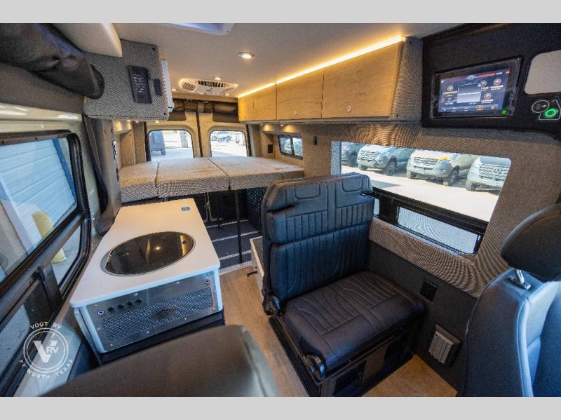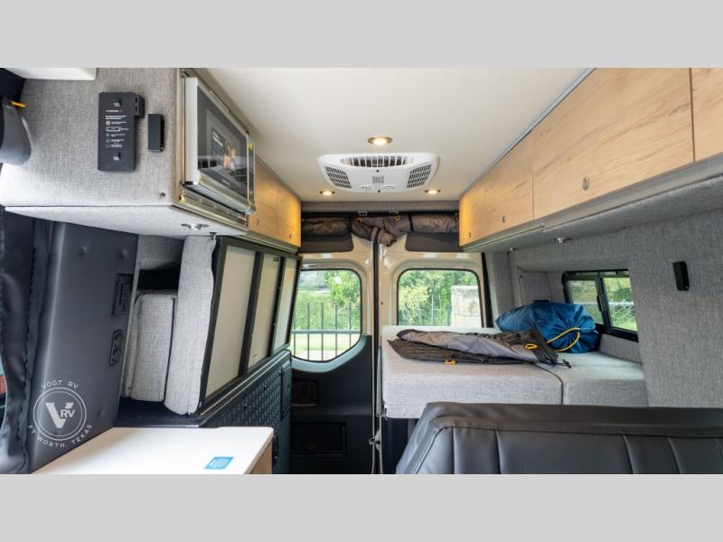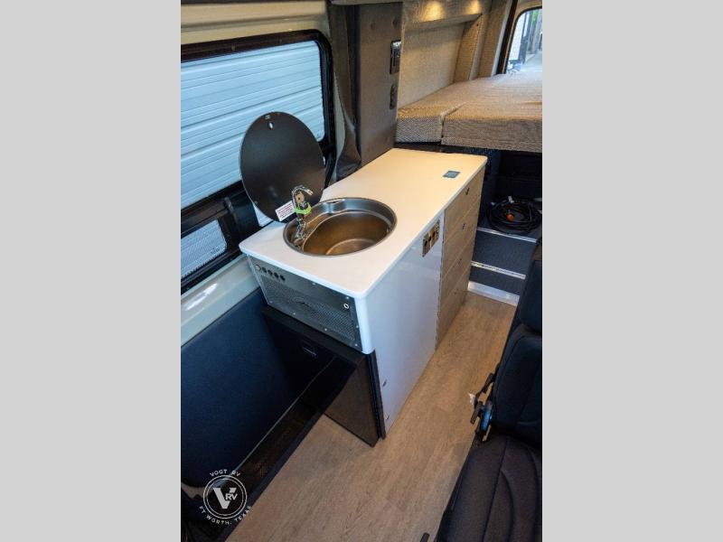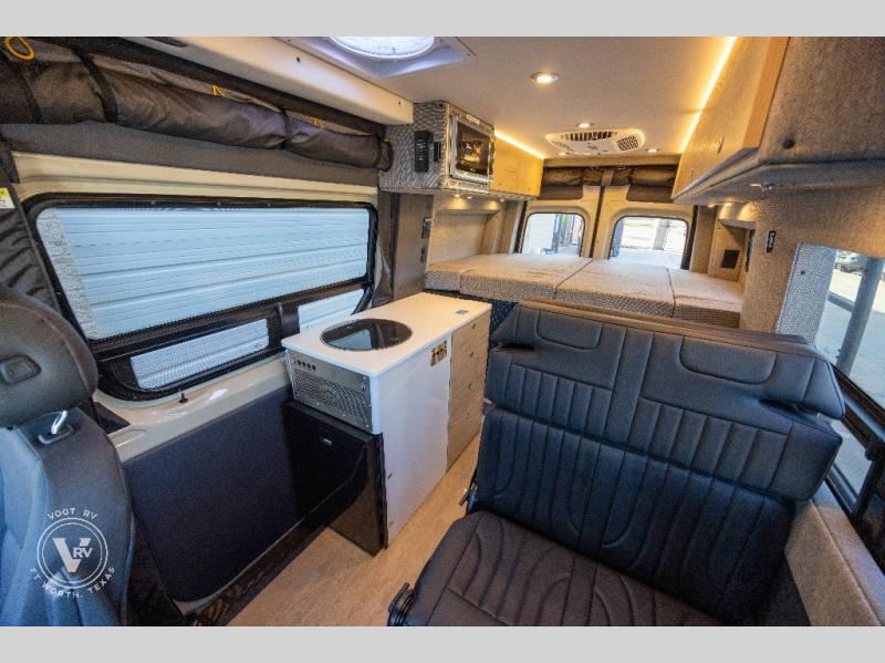 Pack your bags and head out on a great adventure in this motorhome! There is flexible living all throughout between the GrooveLounge which can be used for sitting, lounging, or sleeping at night, plus the cargo area has a L-track system to unfold the Dreamweaver bed/convertible work surface for versatile use. Prepare your best home cooked meals on the road with the portable induction cooktop and enjoy them with the removable dinette table. You can also freshen up after a long day of traveling in the HALO interior shower system with a FlexSpace concealed shower pan and portable toilet.