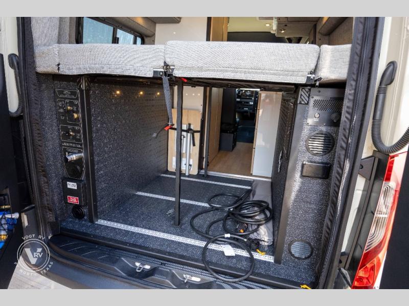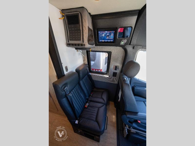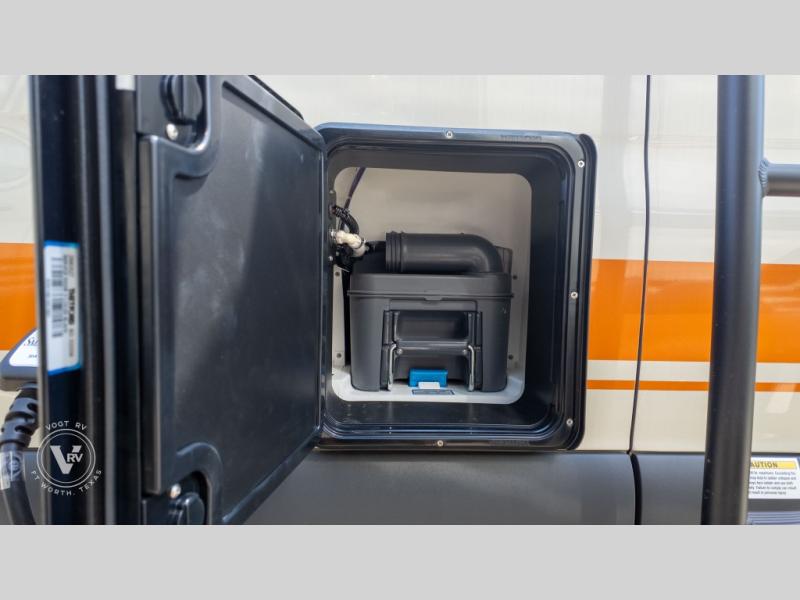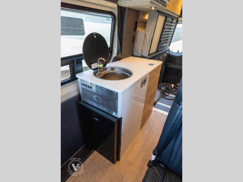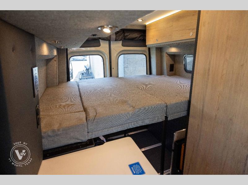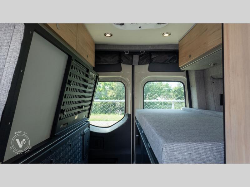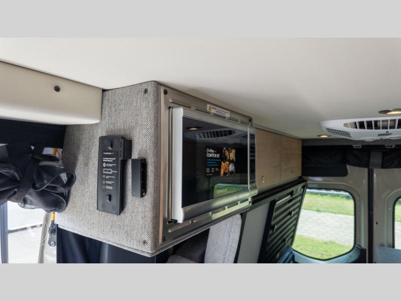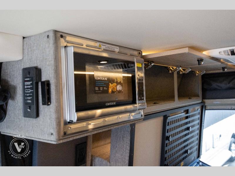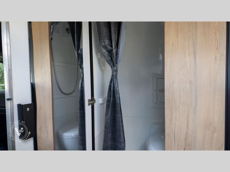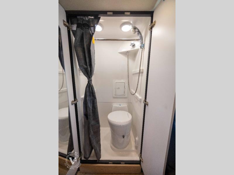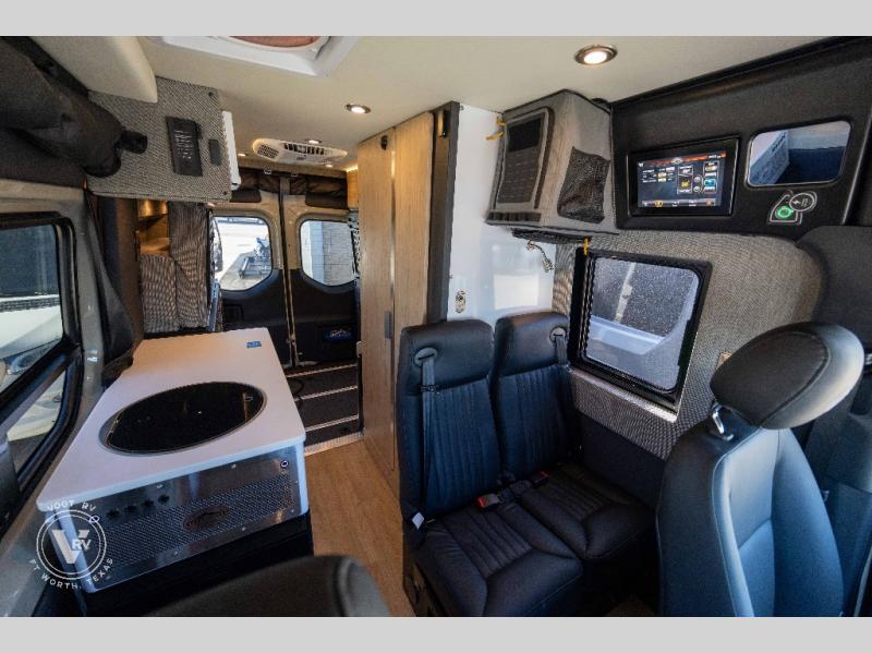 Pack your bags and head out on a great adventure in this motorhome! There is flexible living all throughout between the electric slide LoveSeat and the Dreamweaver bed/convertible work surface. Prepare your best home cooked meals on the road with the portable induction cooktop and enjoy them with the removable dinette table. The BoomBox wet bath includes removable Molle shelves, dimmable LED lights, a vent fan, plus a cassette toilet with freshwater flushing for added convenience.