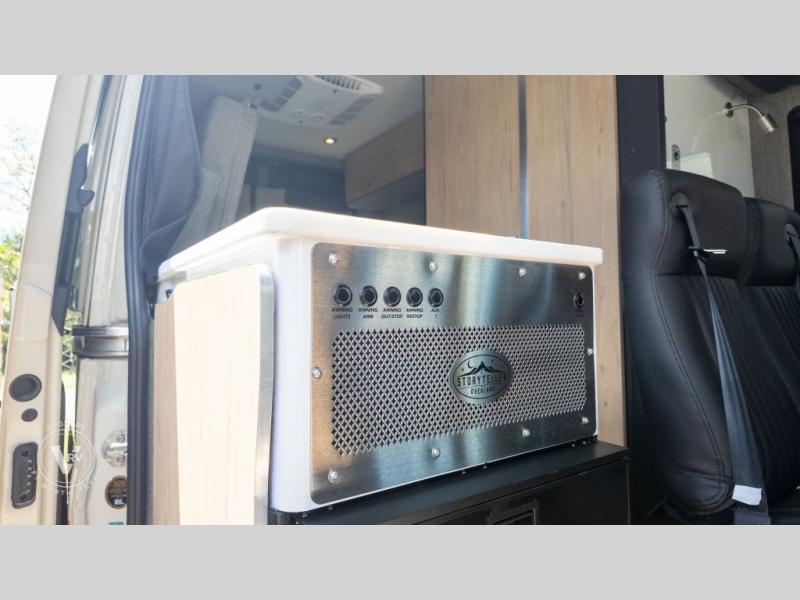 Live free, explore endlessly, and tell better stories with the Storyteller Overland Class B diesel van! With an all-wheel drive and diesel engine, the Storyteller Overland MODE XO models are always ready to go whenever you are! You can travel with complete peace of mind knowing that each van meets all of the qualifications for the various and rigorous safety tests, so it is safe. But the Storyteller Overland is also fun and rugged with its rugged roof rack with sonic wedge deflector, powered awning with dimmable LED lights, outside shower, and portable Bluetooth speaker. The BoomBox wet/dry bath/closet will allow you to take showers each day and also use this space as a drying closet since there are removable shelves, double opening doors, and a closet rod to name a few features. Additional features include an M-Power energy system powered by Lithionics, convenient bug screens, plus 110V outlets and USB ports to keep you charged up!