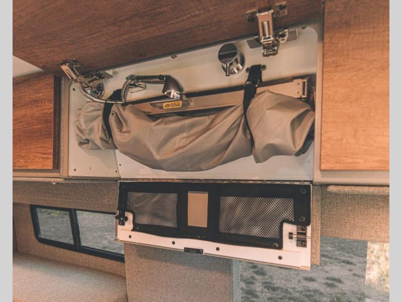 Live free, explore endlessly, and tell better stories with the Storyteller Overland Class B diesel van! With an all-wheel drive and diesel engine, the Storyteller Overland MODE OG models are always ready to go whenever you are! You can travel with complete peace of mind knowing that each van meets all of the qualifications for the various and rigorous safety tests, so it is safe. But the Storyteller Overland is also fun and rugged with its rugged roof rack with sonic wedge deflector, powered awning with dimmable LED lights, portable toilet, outside shower, and portable Bluetooth speaker. The HALO shower conveniently stores in a cabinet and includes a shower head and curtain that can be rolled up and stored when not in use, providing you with more living space! Additional features include an M-Power energy system powered by Lithionics, convenient bug screens, plus 110V outlets and USB ports to keep you charged up!