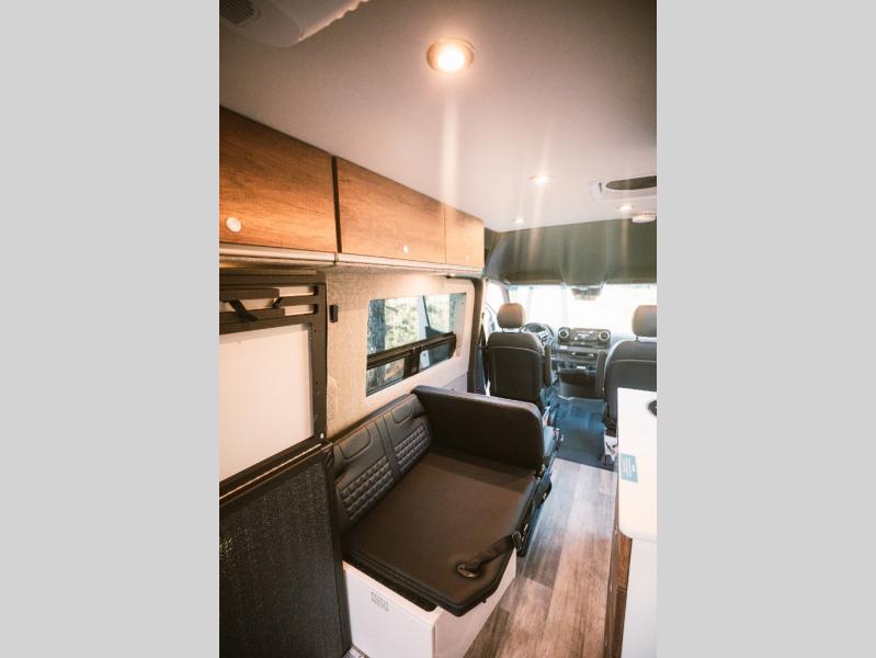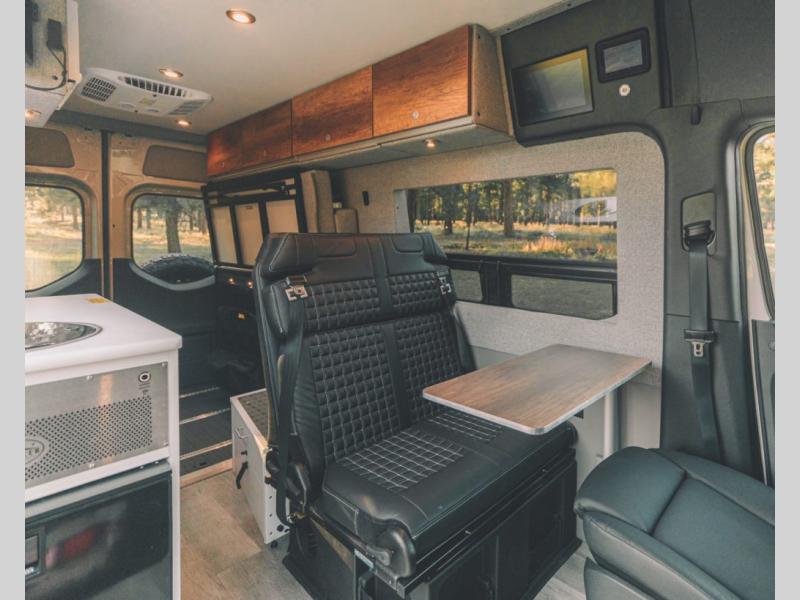 Pack your bags and head out on a great adventure in this motorhome! There is flexible living all throughout between the GrooveLounge which can be used for sitting, lounging, or sleeping at night, plus the cargo area has a L-track system to unfold the Dreamweaver bed/convertible work surface for versatile use. Prepare your best home cooked meals on the road with the portable induction cooktop and enjoy them with the removable dinette table. You can also freshen up after a long day of traveling in the HALO interior shower system with a FlexSpace concealed shower pan and portable toilet.