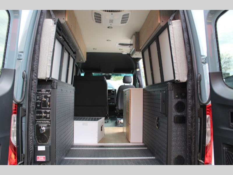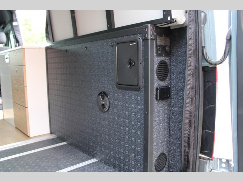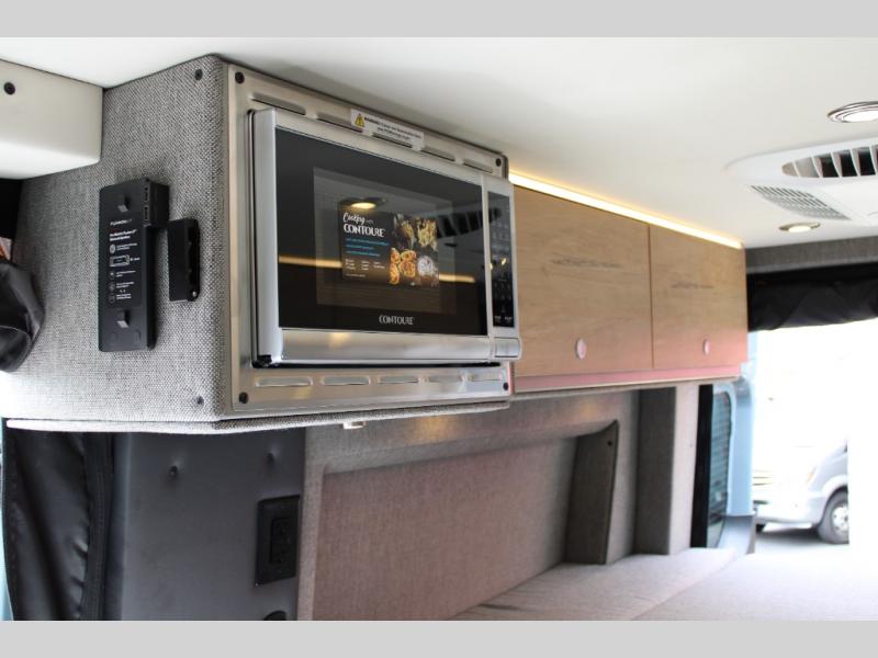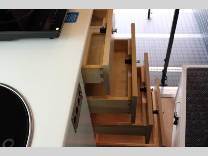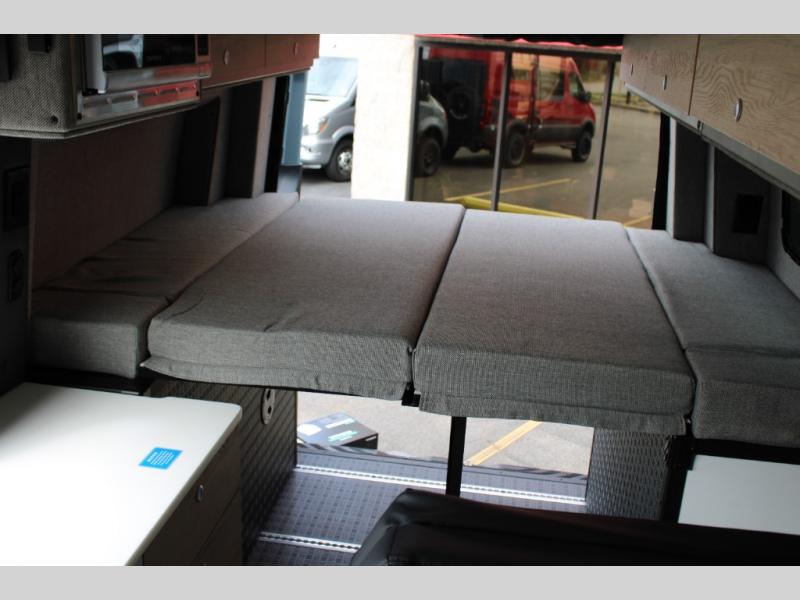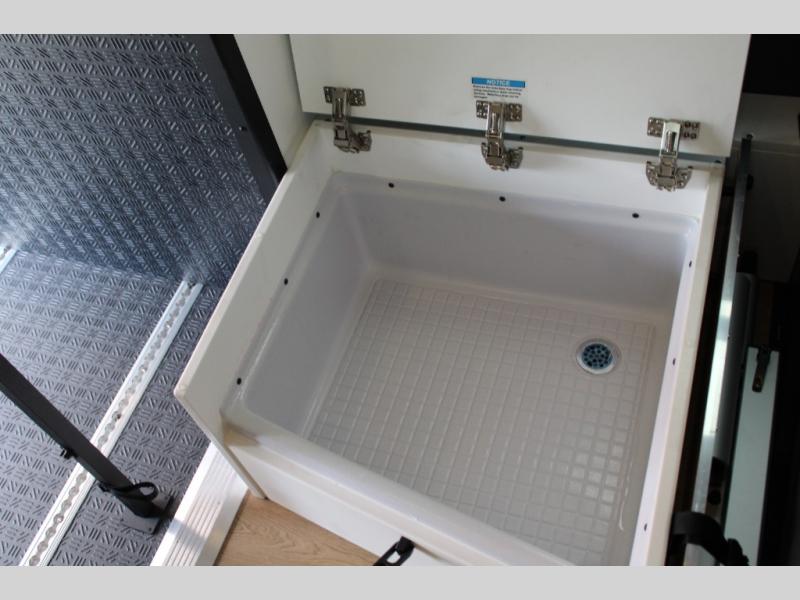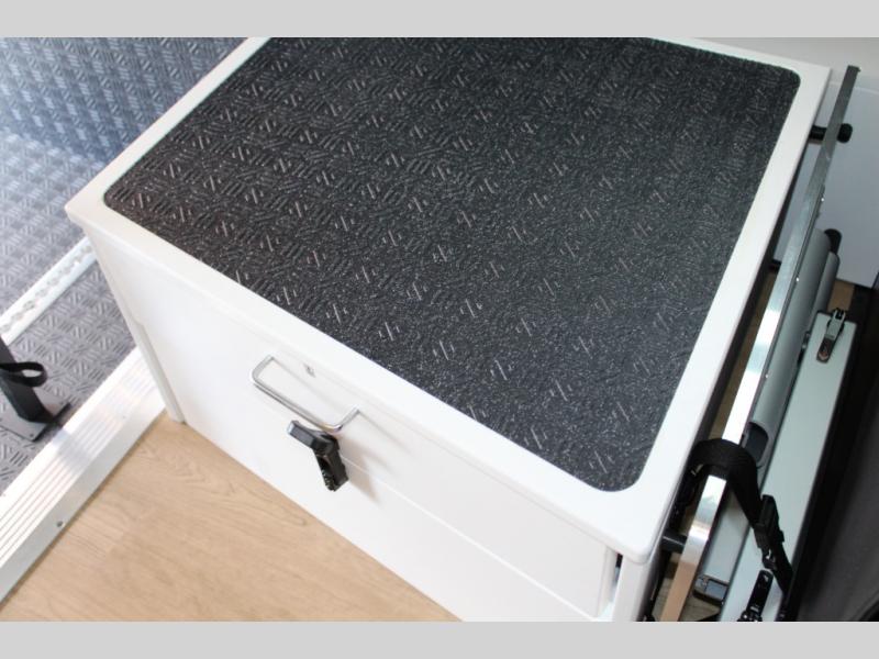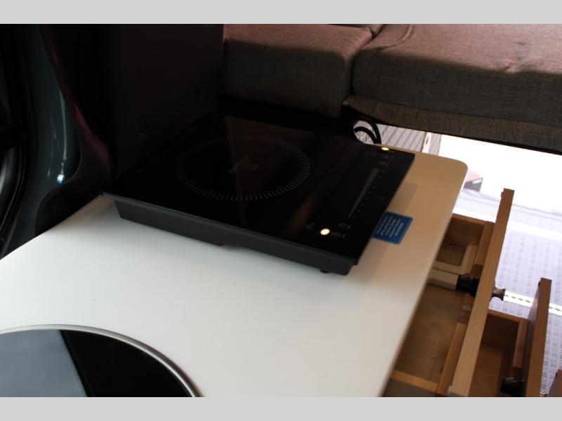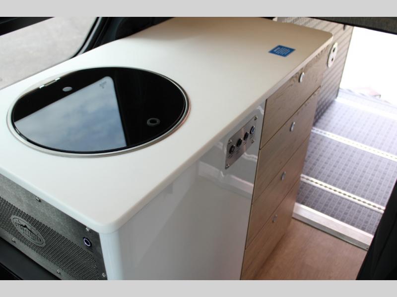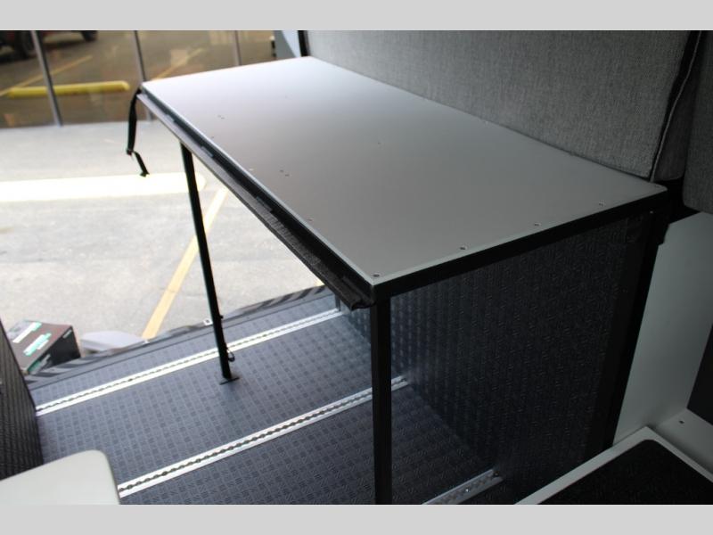 Pack your bags and head out on a great adventure in this motorhome! There is flexible living all throughout between the GrooveLounge which can be used for sitting, lounging, or sleeping at night, plus the cargo area has a L-track system to unfold the Dreamweaver bed/convertible work surface for versatile use. Prepare your best home cooked meals on the road with the portable induction cooktop and enjoy them with the removable dinette table. You can also freshen up after a long day of traveling in the HALO interior shower system with a FlexSpace concealed shower pan and portable toilet.