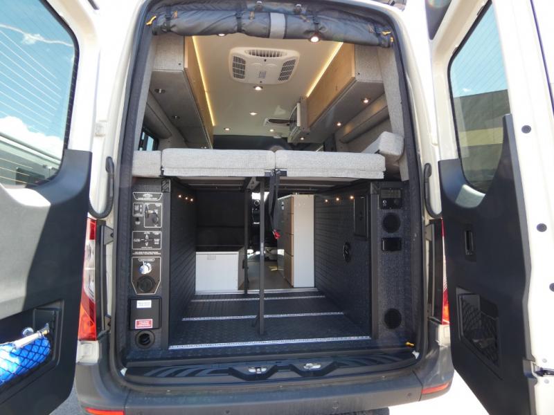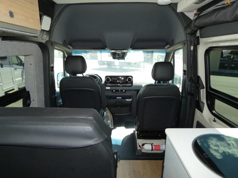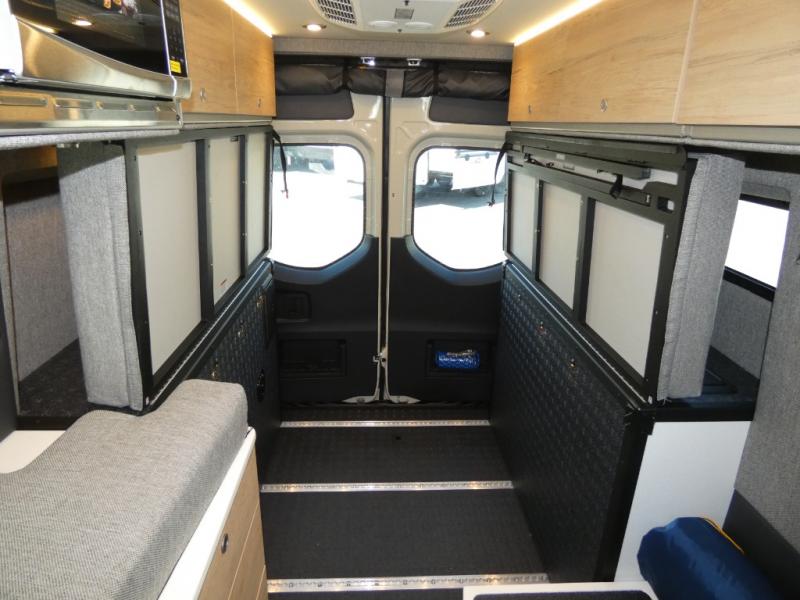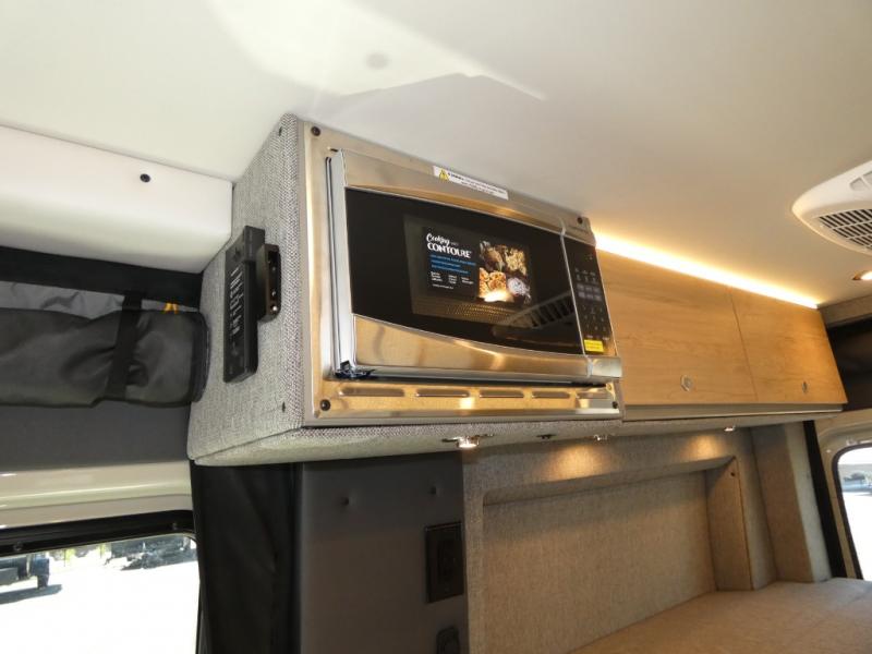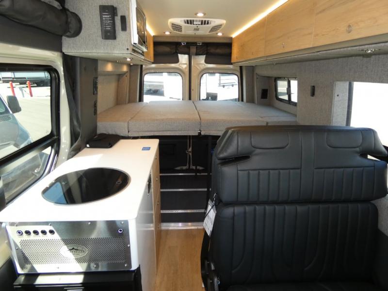 Pack your bags and head out on a great adventure in this motorhome! There is flexible living all throughout between the GrooveLounge which can be used for sitting, lounging, or sleeping at night, plus the cargo area has a L-track system to unfold the Dreamweaver bed/convertible work surface for versatile use. Prepare your best home cooked meals on the road with the portable induction cooktop and enjoy them with the removable dinette table. You can also freshen up after a long day of traveling in the HALO interior shower system with a FlexSpace concealed shower pan and portable toilet.
