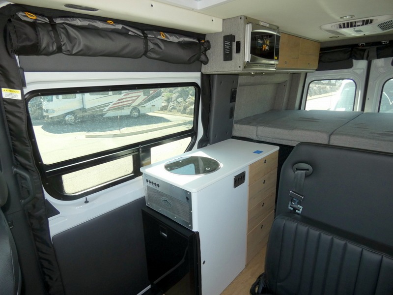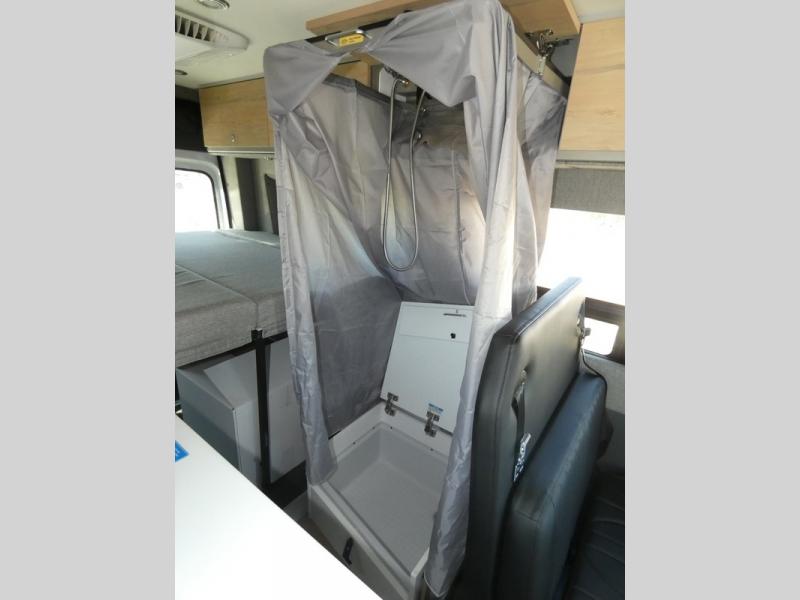 Pack your bags and head out on a great adventure in this motorhome! There is flexible living all throughout between the GrooveLounge which can be used for sitting, lounging, or sleeping at night, plus the cargo area has a L-track system to unfold the Dreamweaver bed/convertible work surface for versatile use. Prepare your best home cooked meals on the road with the portable induction cooktop and enjoy them with the removable dinette table. You can also freshen up after a long day of traveling in the HALO interior shower system with a FlexSpace concealed shower pan and portable toilet.