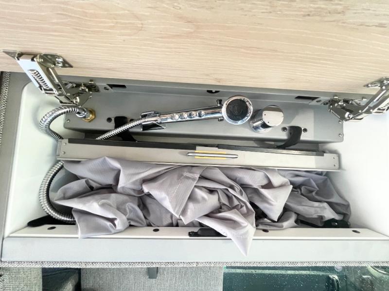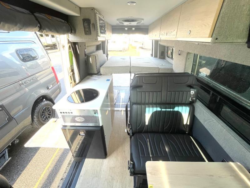 Pack your bags and head out on a great adventure in this motorhome! There is flexible living all throughout between the GrooveLounge which can be used for sitting, lounging, or sleeping at night, plus the cargo area has a L-track system to unfold the Dreamweaver bed/convertible work surface for versatile use. Prepare your best home cooked meals on the road with the portable induction cooktop and enjoy them with the removable dinette table. You can also freshen up after a long day of traveling in the HALO interior shower system with a FlexSpace concealed shower pan and portable toilet.