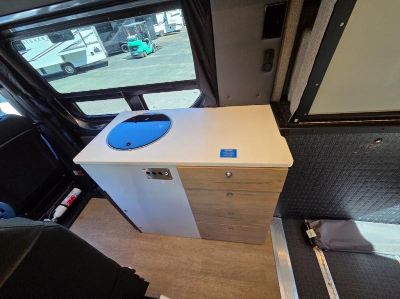 Live free, explore endlessly, and tell better stories with the Storyteller Overland Class B diesel van! With an all-wheel drive and diesel engine, the Storyteller Overland MODE OG models are always ready to go whenever you are! You can travel with complete peace of mind knowing that each van meets all of the qualifications for the various and rigorous safety tests, so it is safe. But the Storyteller Overland is also fun and rugged with its rugged roof rack with sonic wedge deflector, powered awning with dimmable LED lights, portable toilet, outside shower, and portable Bluetooth speaker. The HALO shower conveniently stores in a cabinet and includes a shower head and curtain that can be rolled up and stored when not in use, providing you with more living space! Additional features include an M-Power energy system powered by Lithionics, convenient bug screens, plus 110V outlets and USB ports to keep you charged up!