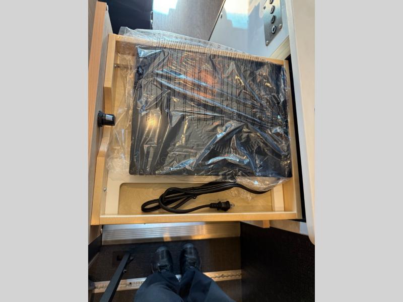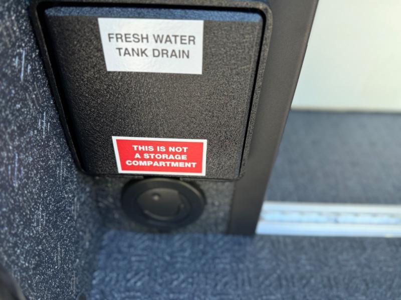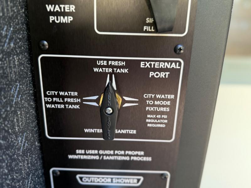 You'll love the stealthy exterior of the DARKMODE OG! The ElectricSlide LoveSeat, power recline seats will let you sit together, or slide them apart for two individual seats, plus you'll have Dreamweaver bed that easily folds up to reveal a workspace. There is plenty of storage space throughout, including under the bed and in the removable upper cabinetry. You can whip up your best meals with the portable induction cooktop and stainless steel microwave, and the refrigerator/freezer will keep cold items fresh. There is also a stainless steel sink with a folding faucet and an exterior fold-down table if you want to get some fresh air as you prep dinner. You'll love the convenience of having a wet bath onboard, along with a vent fan, dimmable LED lights in the bath, and a diesel fired water heating system for more comfort!
