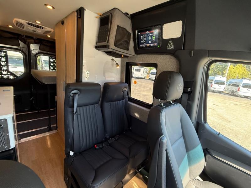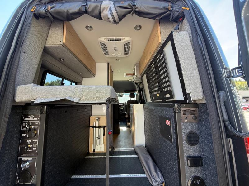 The 2025 Storyteller Overland DARKMODE XO is a top-tier Class B adventure van designed for discerning explorers. Built on a Mercedes-Benz Sprinter chassis, it combines rugged off-road capabilities with luxurious comfort. Its 21-foot length and all-wheel drive make it agile and versatile, while the sleek black exterior with the DARKMODE graphics package ensures a stealthy and modern appearance.