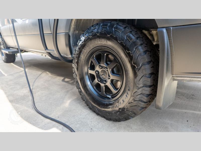 RUGGED DURABILITY: Built on the robust Mercedes-Benz Sprinter AWD chassis, the DARK MODE XO is forged for the trail. With a reinforced design, high ground clearance, and All-Terrain Tires, its durability is unmatched for aggressive off-roading.