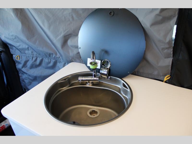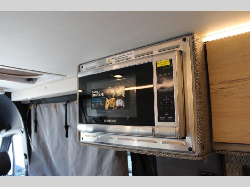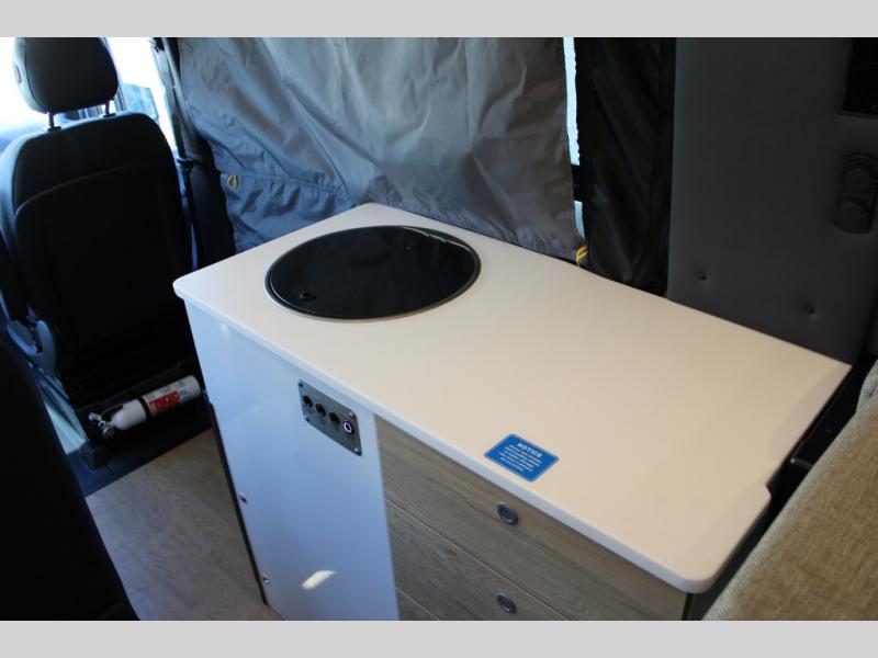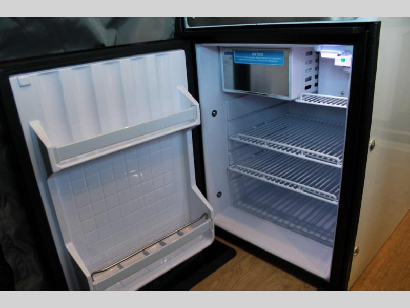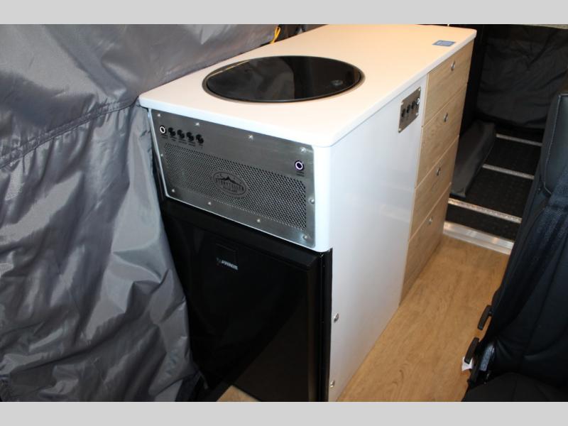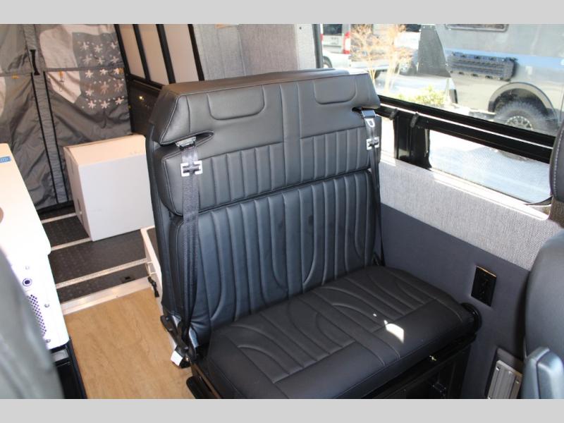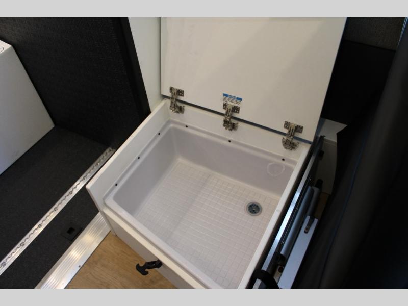 You'll love the stealthy exterior of the DARKMODE OG! The GrooveLounge can seat two adults and can convert to a couch or bed, plus you'll have Dreamweaver bed that easily folds up to reveal a workspace. There is plenty of storage space throughout, including under the bed and in the removable upper cabinetry. You can whip up your best meals with the portable induction cooktop and stainless steel microwave, and the refrigerator/freezer will keep cold items fresh. There is also a stainless steel sink with a folding faucet and an exterior fold-down table if you want to get some fresh air as you prep dinner. You'll appreciate the Halo shower with a FlexSpace concealed shower pan, along with a portable toilet and hot water recirculation system.