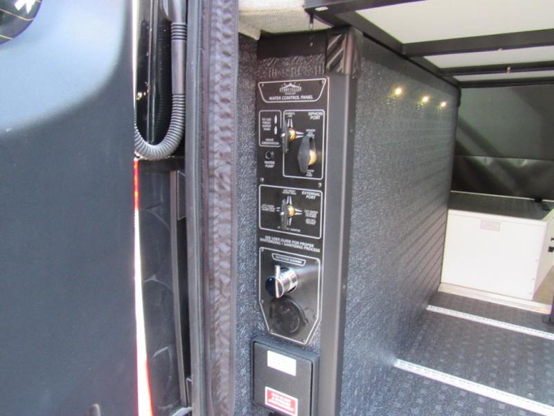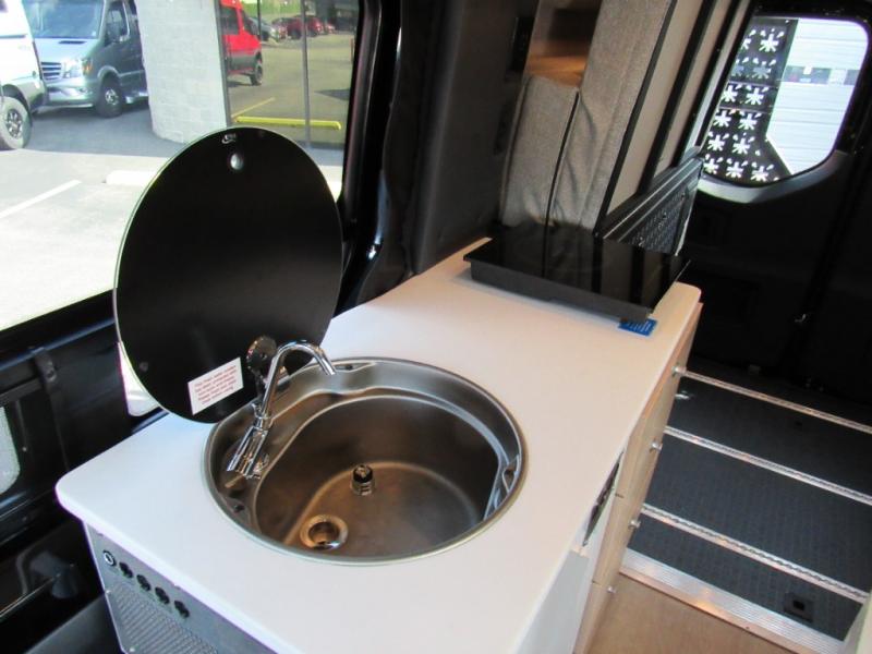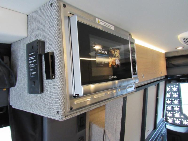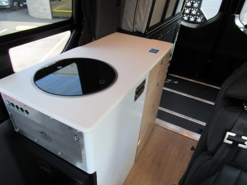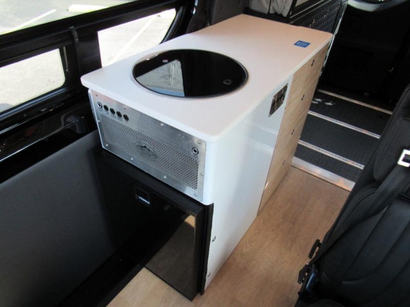 You'll love the stealthy exterior of the DARKMODE OG! The GrooveLounge can seat two adults and can convert to a couch or bed, plus you'll have Dreamweaver bed that easily folds up to reveal a workspace. There is plenty of storage space throughout, including under the bed and in the removable upper cabinetry. You can whip up your best meals with the portable induction cooktop and stainless steel microwave, and the refrigerator/freezer will keep cold items fresh. There is also a stainless steel sink with a folding faucet and an exterior fold-down table if you want to get some fresh air as you prep dinner. You'll appreciate the Halo shower with a FlexSpace concealed shower pan, along with a portable toilet and hot water recirculation system.