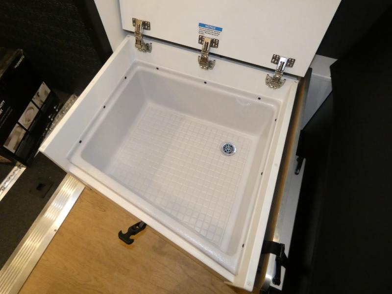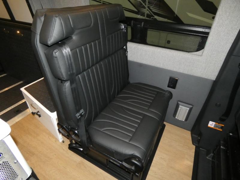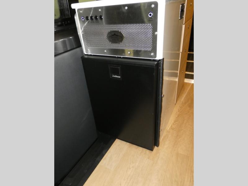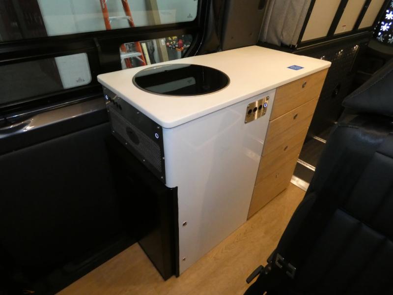 You'll love the stealthy exterior of the DARKMODE OG! The GrooveLounge can seat two adults and can convert to a couch or bed, plus you'll have Dreamweaver bed that easily folds up to reveal a workspace. There is plenty of storage space throughout, including under the bed and in the removable upper cabinetry. You can whip up your best meals with the portable induction cooktop and stainless steel microwave, and the refrigerator/freezer will keep cold items fresh. There is also a stainless steel sink with a folding faucet and an exterior fold-down table if you want to get some fresh air as you prep dinner. You'll appreciate the Halo shower with a FlexSpace concealed shower pan, along with a portable toilet and hot water recirculation system.