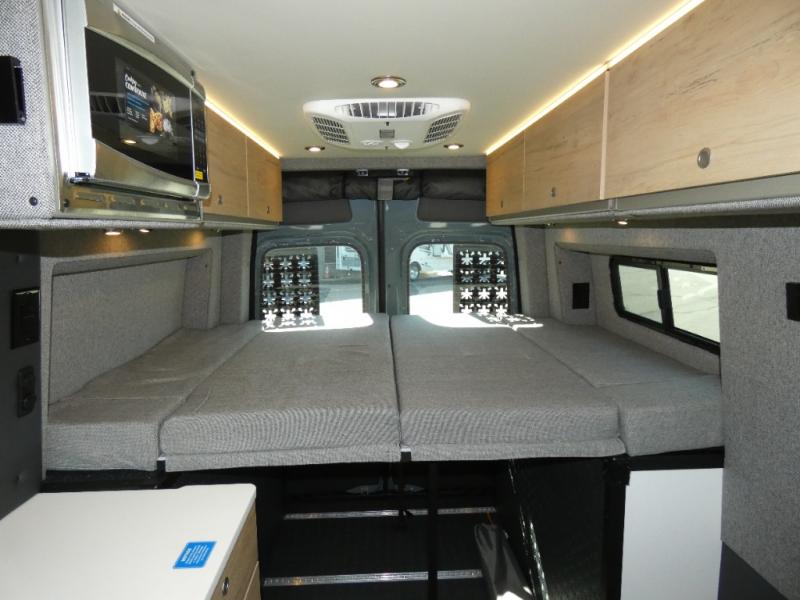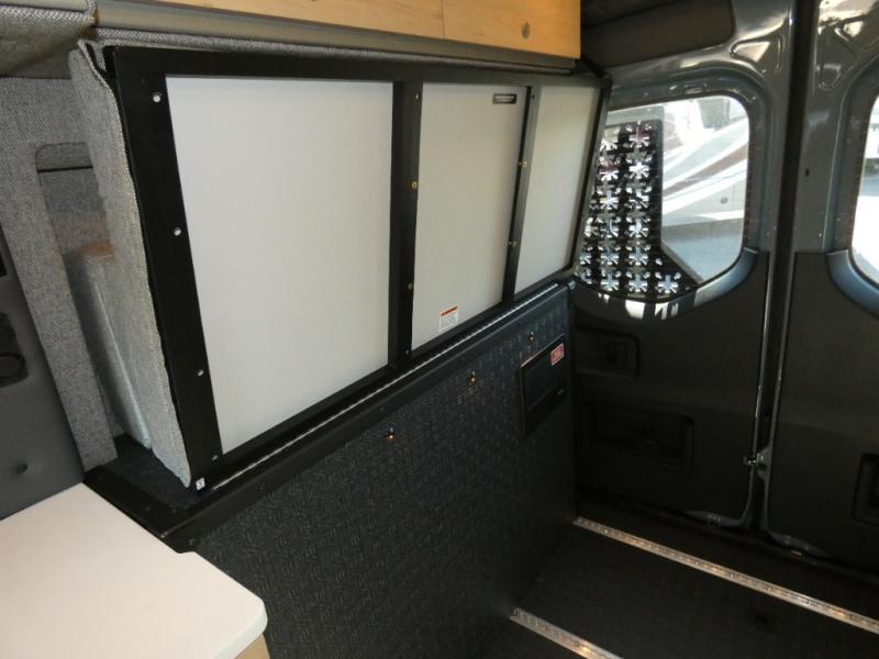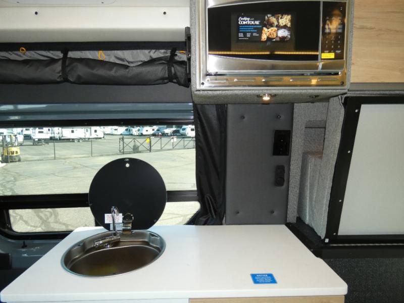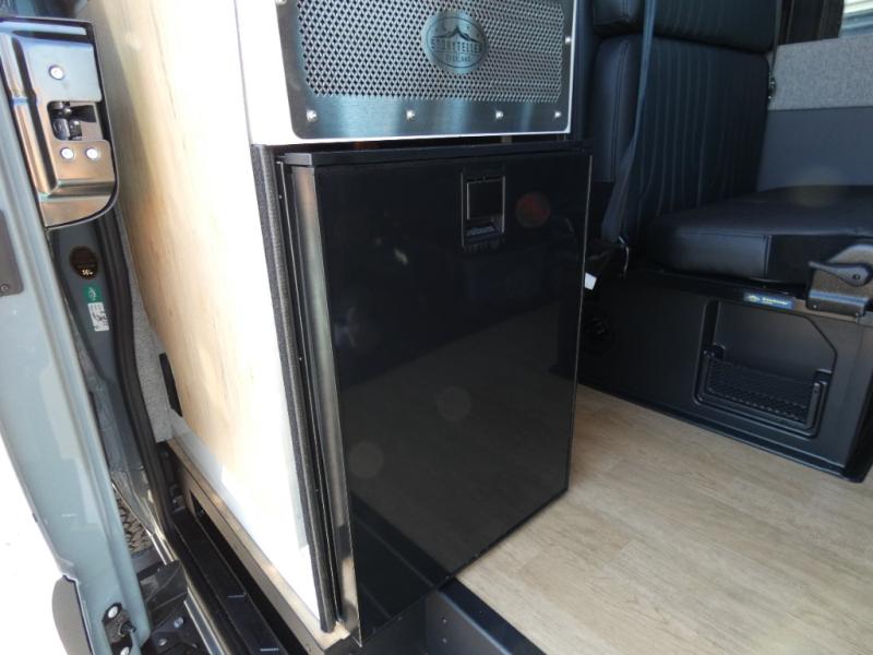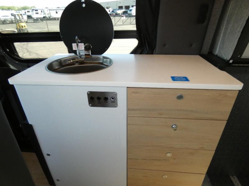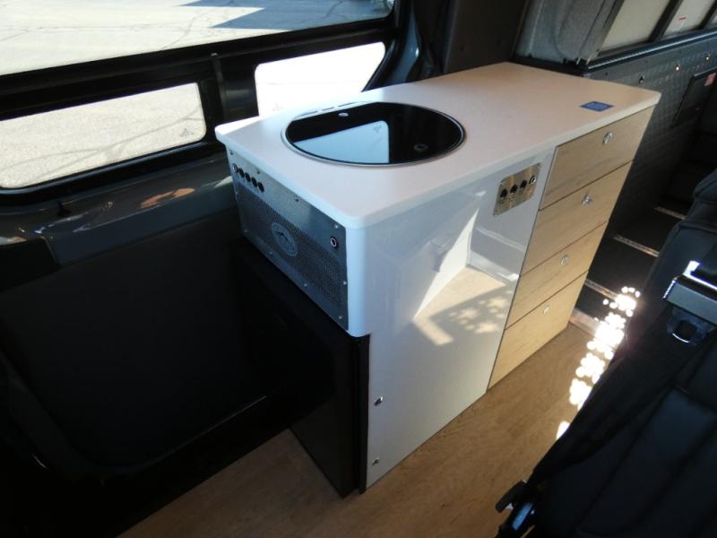 You'll love the stealthy exterior of the DARKMODE OG! The GrooveLounge can seat two adults and can convert to a couch or bed, plus you'll have Dreamweaver bed that easily folds up to reveal a workspace. There is plenty of storage space throughout, including under the bed and in the removable upper cabinetry. You can whip up your best meals with the portable induction cooktop and stainless steel microwave, and the refrigerator/freezer will keep cold items fresh. There is also a stainless steel sink with a folding faucet and an exterior fold-down table if you want to get some fresh air as you prep dinner. You'll appreciate the Halo shower with a FlexSpace concealed shower pan, along with a portable toilet and hot water recirculation system.