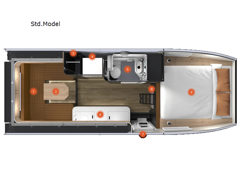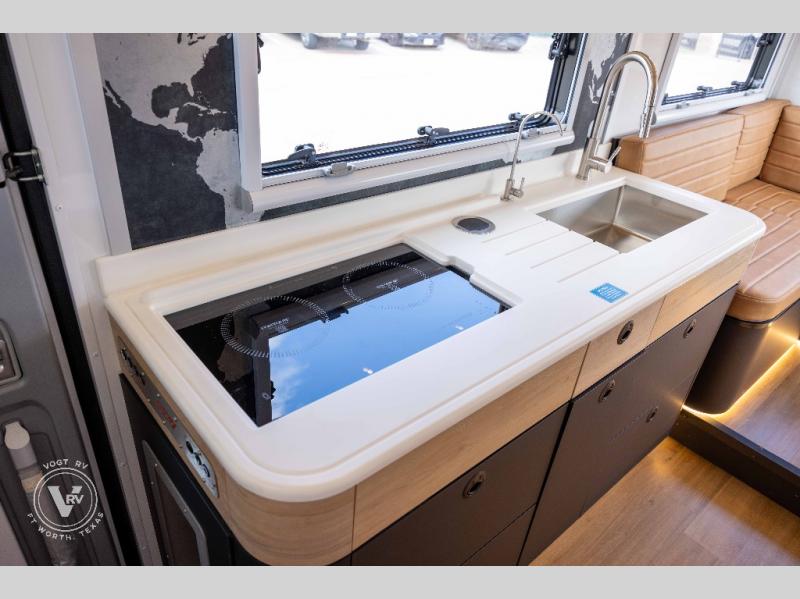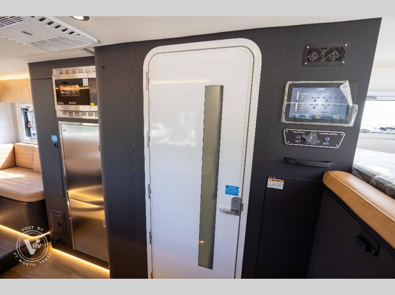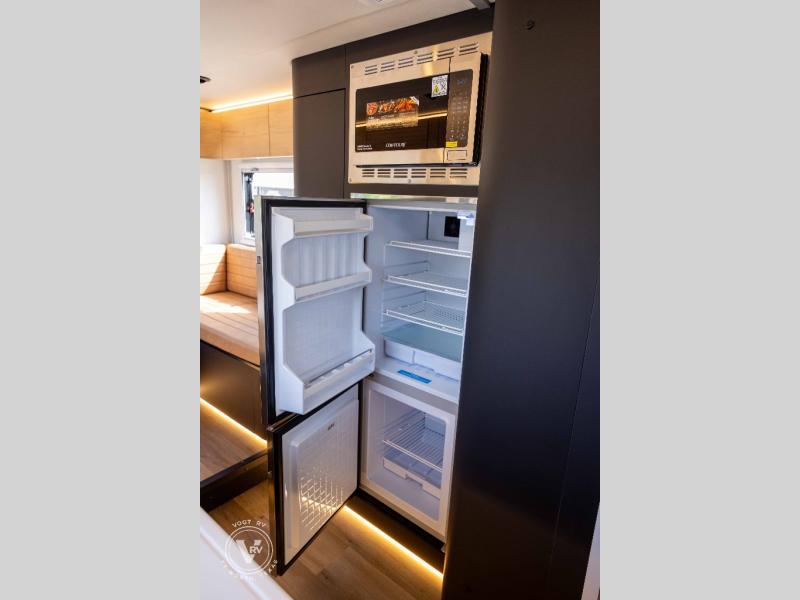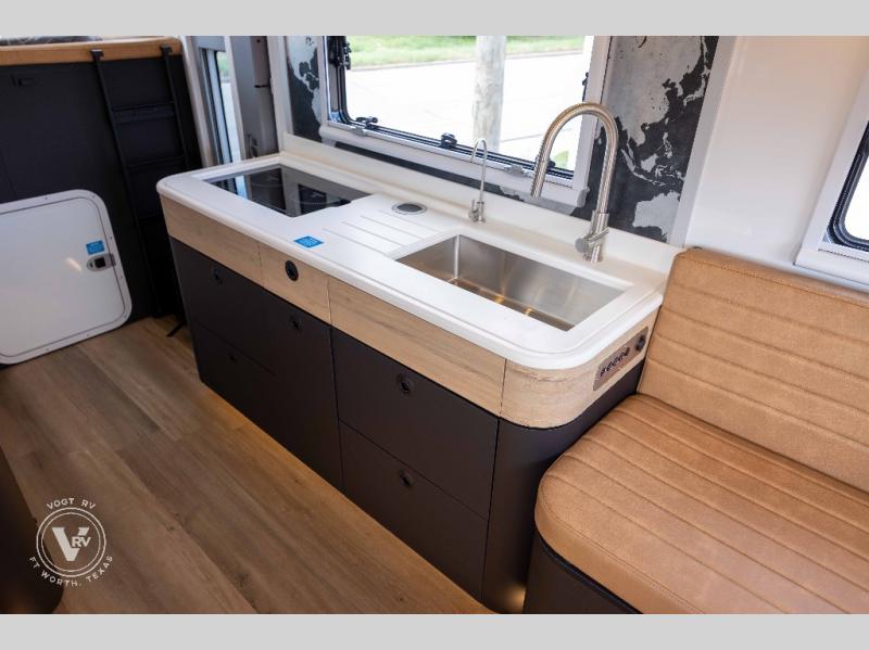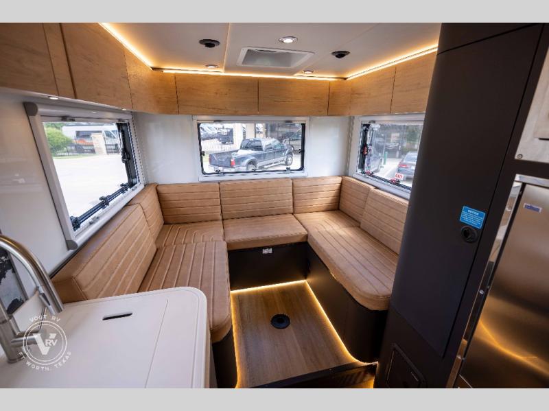Rugged on the outside, refined on the inside is what you will find with this adventure truck! Enjoy home cooked meals in the wilderness with the stainless steel convection oven, microwave, air fryer, and 1800 watt dual burner induction cooktop, plus a stainless steel 4.6 cu. ft. fridge/freezer. The U-shaped dinette is great for gathering around together during the day and at night it can transform into an extra sleeping space. Fall asleep under the stars with the loft queen bed which has a window right above it for your viewing pleasure and 3.7 cu. ft. of total bin storage below it. It also has 12V USBs, 110V outlets, and wireless charging stations next to the bed. Freshen up each morning in the spacious wet bathroom with 6' 5" of standing room and 120 gallons of fresh water on board!