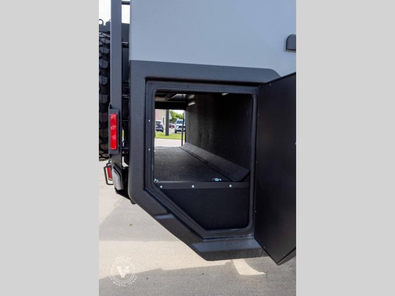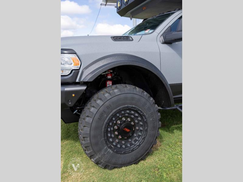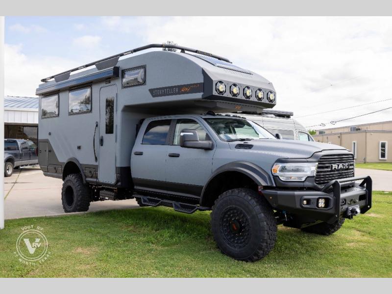 The Storyteller Overland GXV Hilt adventure truck is upping the game on quality while also lowering the barrier to entry price! What sets these adventure trucks apart from regular truck campers is the camper is built directly onto the chassis of the truck for those who want an all-in-one vehicle. They are highly engineered with a Liquid Springs smart suspension system that optimizes your ride quality and handling characteristics for a peace of mind. The proprietary zero torsion subframe allows independent movement from the Ram 5500 chassis to reduce overall stress and improve off-road traction. Speaking of off-road, you can go off the grid thanks to the 1325W Merlin solar panels on the roof and the Lithionics 16.8 kWh M-power system comes with two 3,000W heavy-duty, high-efficiency inverters to power you to every adventure. Come see all of the other handy features they offer!