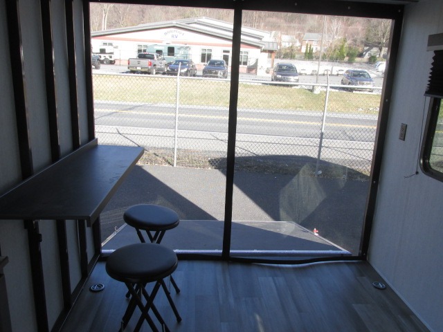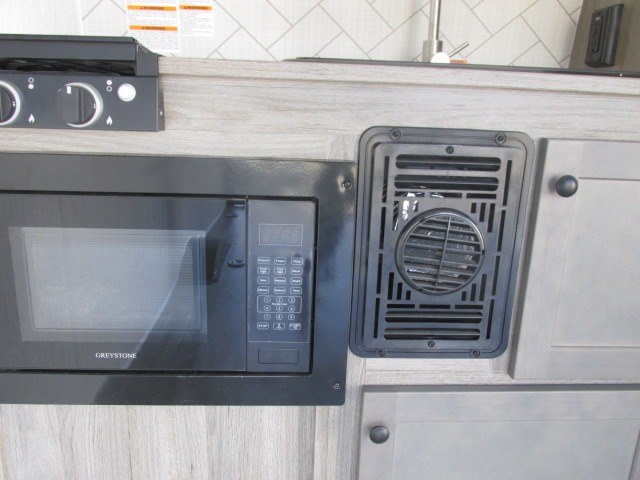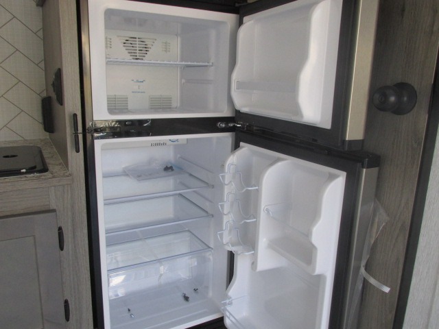 Get ready for a great camping experience where you can take along your favorite ride-on toys, kayaks, or other items that you may not normally have room to load as this toy hauler features a 6' 9" cargo width and 10' 11" cargo length. Once unloaded, set up with the rear bed that will make for a great night's rest. The front of this unit is shared with the wet bath and kitchen. Here, you can make meals on the two burner stove or in the microwave oven, and there is a refrigerator for perishables.