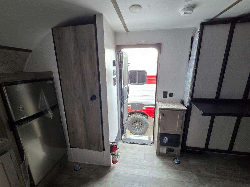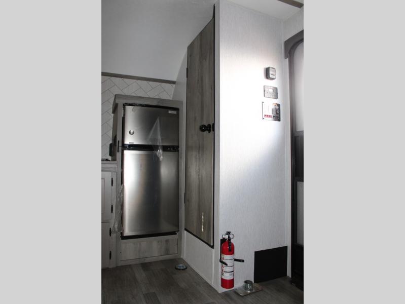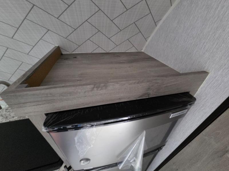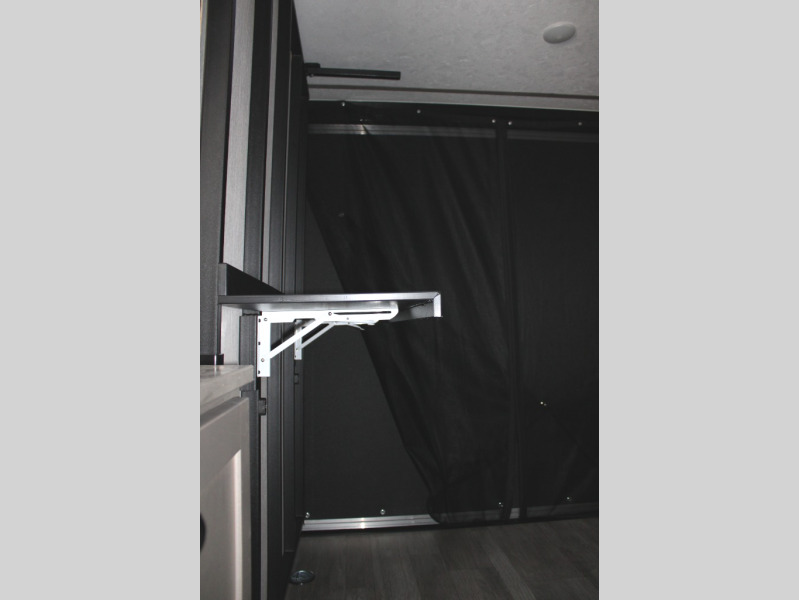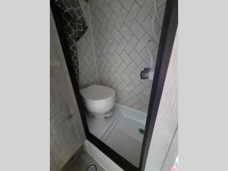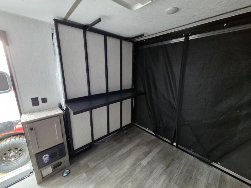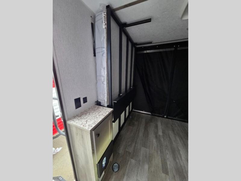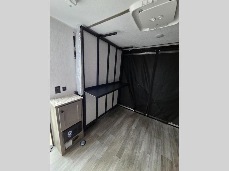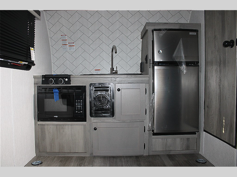 Get ready for a great camping experience where you can take along your favorite ride-on toys, kayaks, or other items that you may not normally have room to load as this toy hauler features a 6' 9" cargo width and 10' 11" cargo length. Once unloaded, set up with the rear bed that will make for a great night's rest. The front of this unit is shared with the wet bath and kitchen. Here, you can make meals on the two burner stove or in the microwave oven, and there is a refrigerator for perishables.