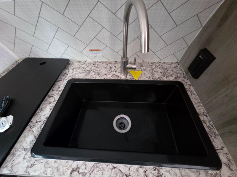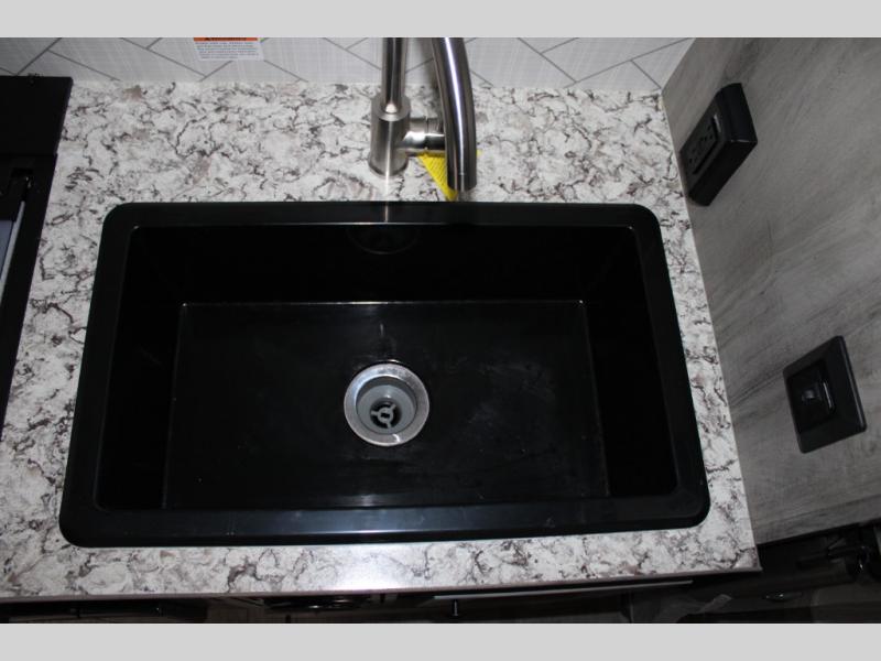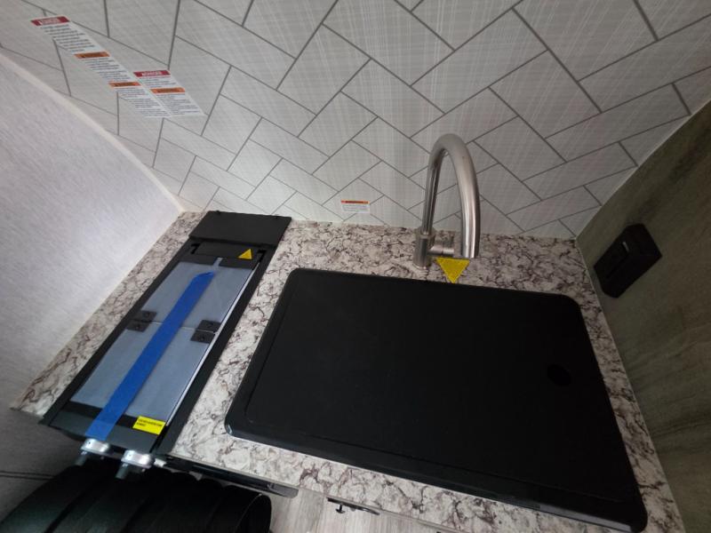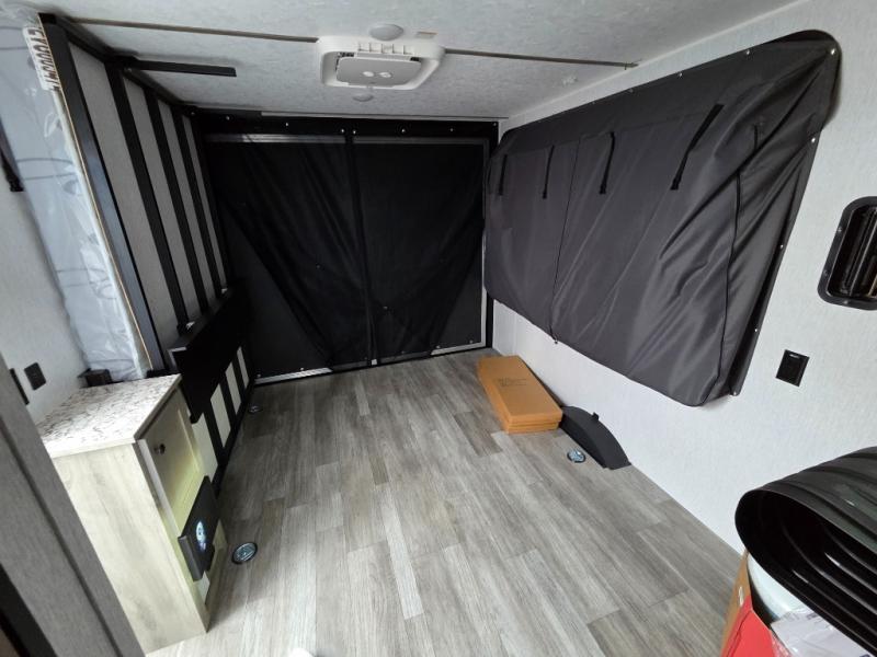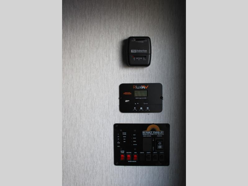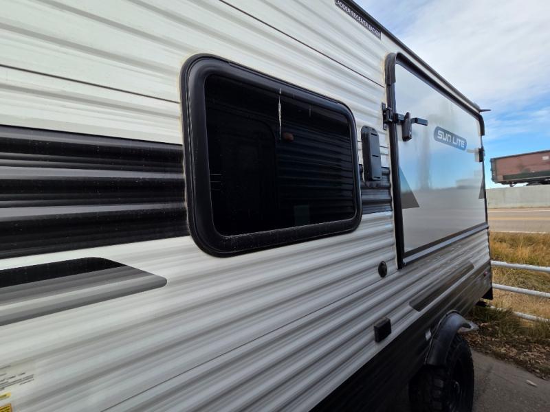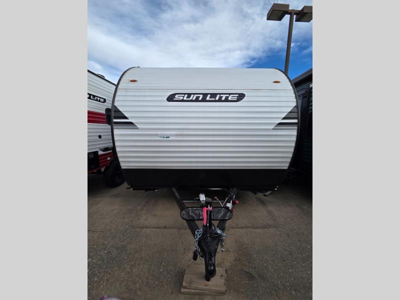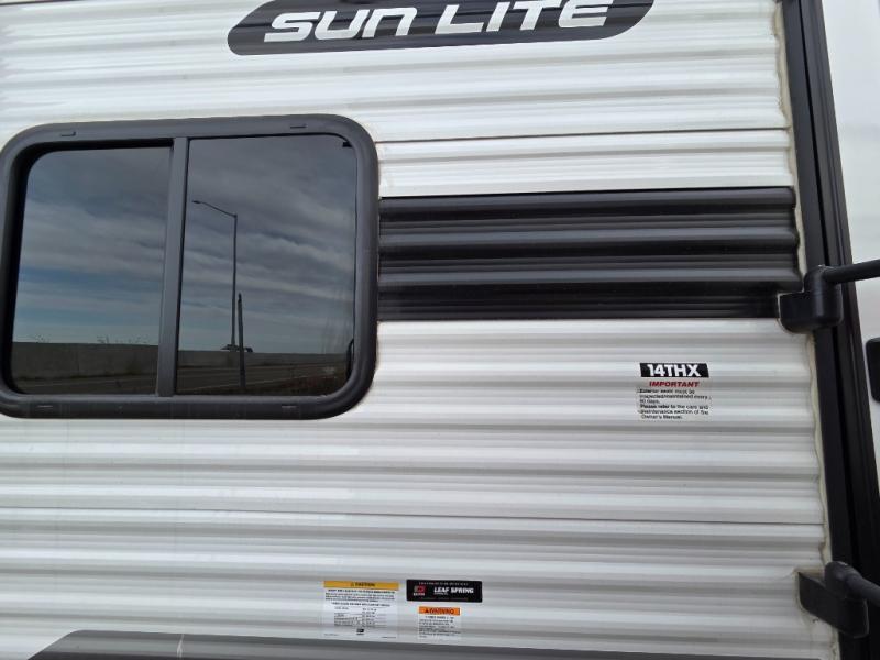 You can trust the build and enjoy your experience with any one of these Sunset Park RV Sun Lite travel trailers or toy haulers! Their aerodynamic profile is not only easy to haul, but also saves on fuel. They are built to withstand years of traveling even though they are lightweight with a diamond plate rock guard, a one piece PVC roof membrane, Dexter Spring-Leaf axles, and tinted safety glass windows. Some comfort standards you are sure to enjoy are the two-burner stove top range with hood, light and fan, plus the refrigerator and microwave, and an outside shower to help keep the dirt outdoors where it belongs.