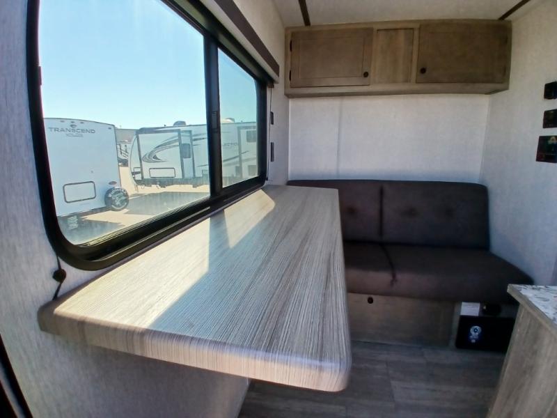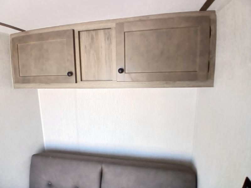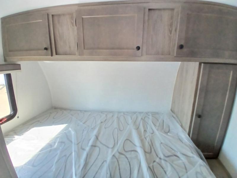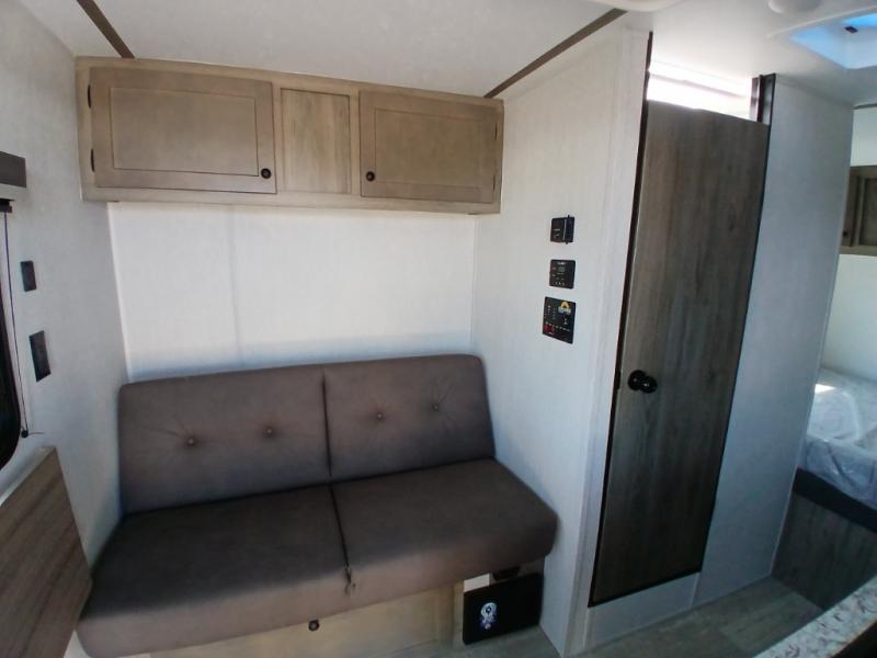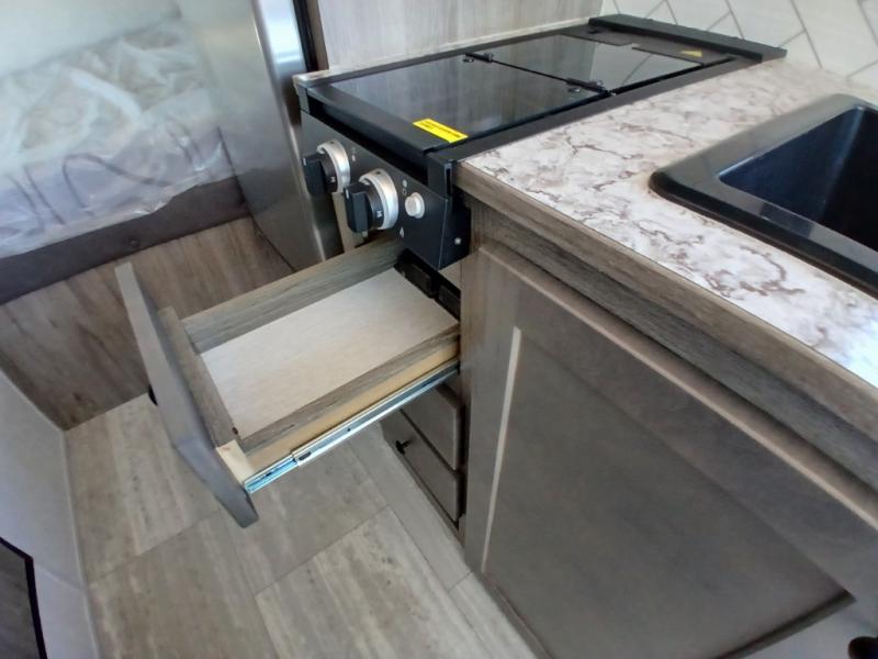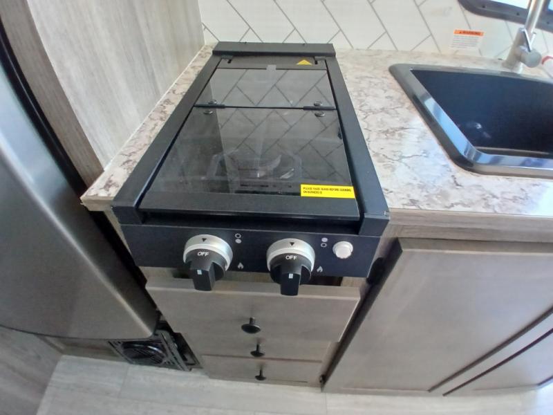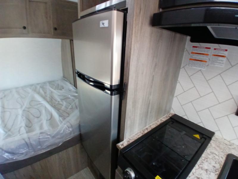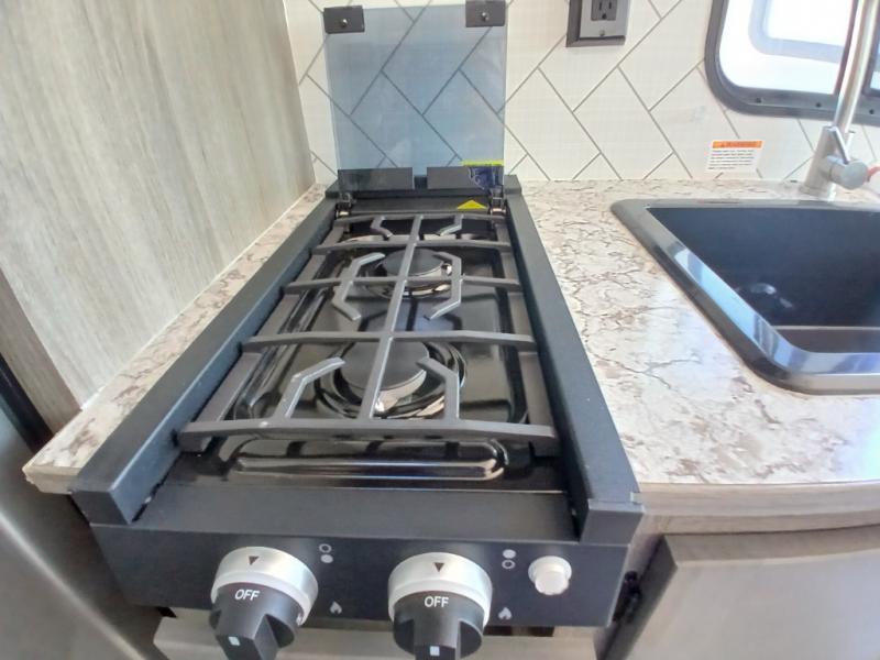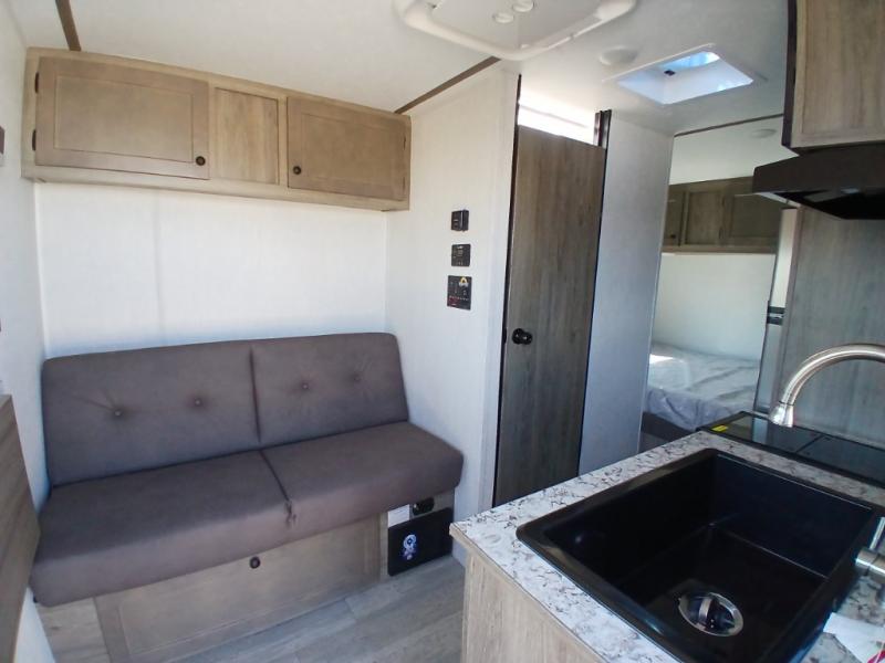 This compact travel trailer will be perfect for trips to the lake. Since there is a front bed, you won't have to sleep on an air mattress, and the convenient wet bath lets you freshen up each day. Breakfast can be made on two burner cooktop or in the microwave oven, and there is a refrigerator to keep your food fresh. This model also includes a sofa where you can relax in the evenings, and guests can sleep here if they want to tag along!