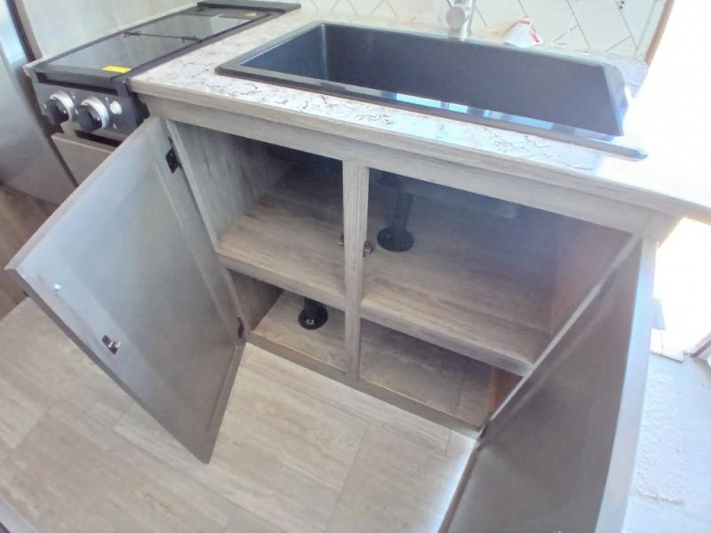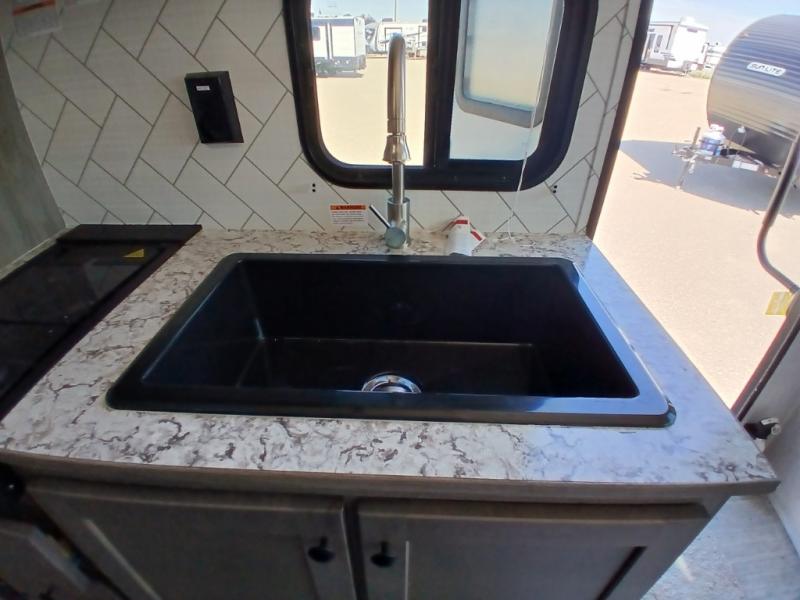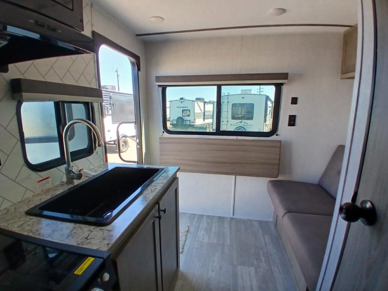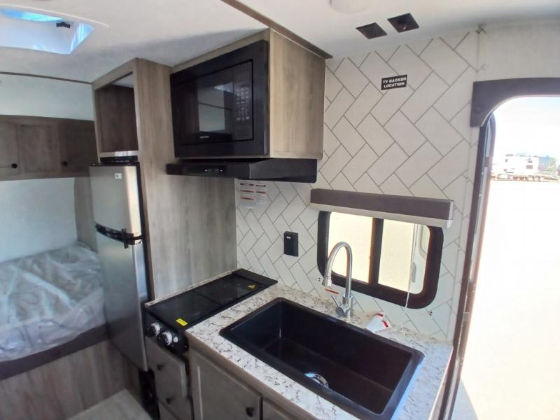 You can trust the build and enjoy your experience with any one of these Sunset Park RV Sun Lite travel trailers! Their aerodynamic profile is not only easy to haul, but also saves on fuel. They are built to withstand years of traveling even though they are lightweight with a diamond plate rock guard, a one piece PVC roof membrane, Dexter Spring-Leaf axles, and tinted safety glass windows. Some comfort standards you are sure to enjoy are the two-burner stove top range with hood, light and fan, plus the refrigerator and microwave, and an outside shower to help keep the dirt outdoors where it belongs.