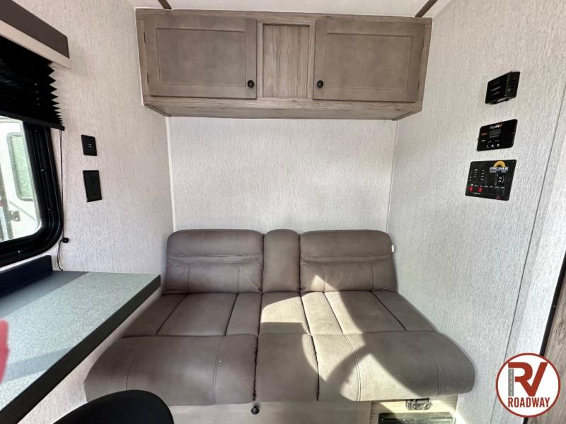 This compact travel trailer will be perfect for trips to the lake. Since there is a front bed, you won't have to sleep on an air mattress, and the convenient wet bath lets you freshen up each day. Breakfast can be made on two burner cooktop or in the microwave oven, and there is a refrigerator to keep your food fresh. This model also includes a sofa where you can relax in the evenings, and guests can sleep here if they want to tag along!