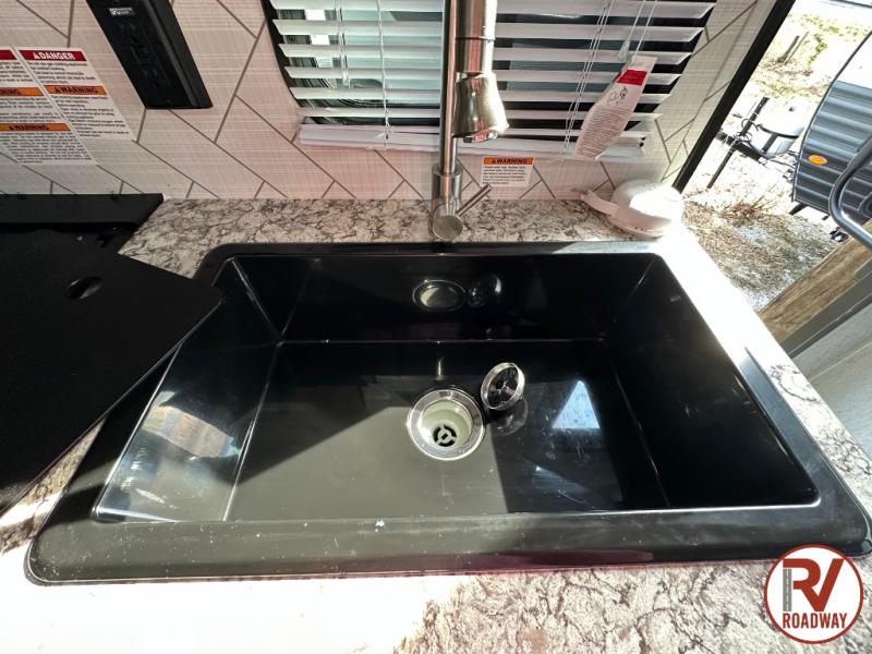 You can trust the build and enjoy your experience with any one of these Sunset Park RV Sun Lite travel trailers! Their aerodynamic profile is not only easy to haul, but also saves on fuel. They are built to withstand years of traveling even though they are lightweight with a diamond plate rock guard, a one piece PVC roof membrane, Dexter Spring-Leaf axles, and tinted safety glass windows. Some comfort standards you are sure to enjoy are the two-burner stove top range with hood, light and fan, plus the refrigerator and microwave, and an outside shower to help keep the dirt outdoors where it belongs.